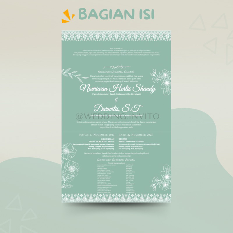 [MINANG] Cetak Undangan Batik-Putih Hijau Pastel Semi-Amplop Pernikahan Separasi Custom Kertas/Paper Wedding Invitation Padang MURAH