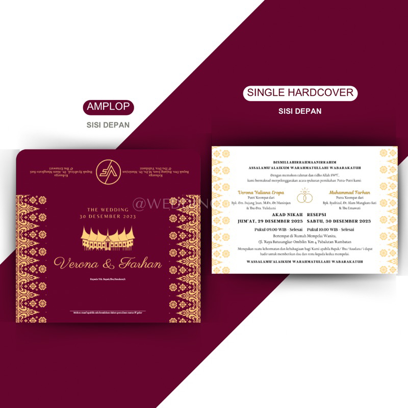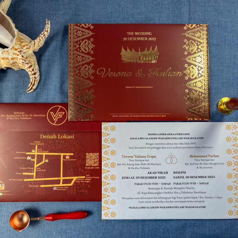 [MINANG Foly] Cetak Undangan Batik-Gold Hardcover Amplop Pernikahan Separasi Custom Kertas/Paper Wedding Invitation Padang
