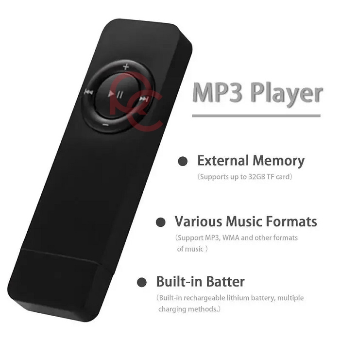 [MINI MP3 PLAYER] Portable Mini MP3 Player Support Micro SD TF Card Rechargeable / Pemutar Musik MP3 Digital Portabel + Slot Micro SD Mini Design [TIDAK TERMASUK SD CARD] - Black
