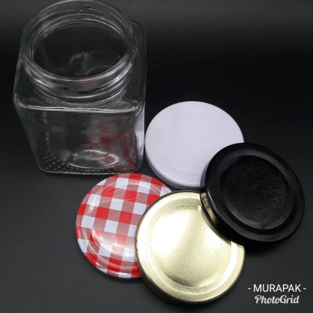 [MINIM 20PCS] TOPLES KOTAK JAR KACA 300ml BOTOL SELAI /COOKIES TUTUP HITAM (JK300)