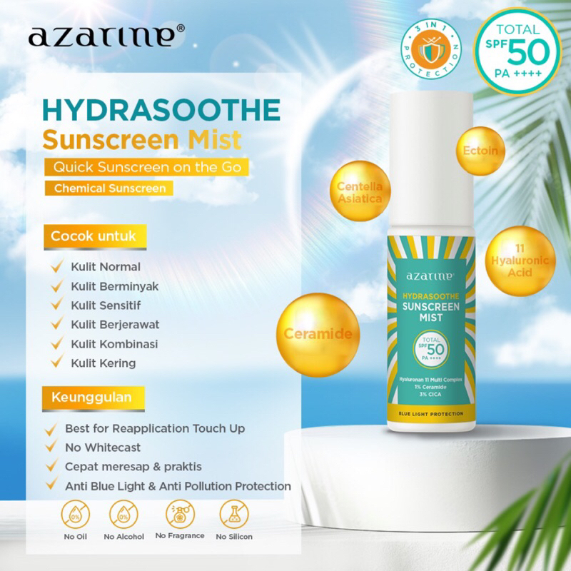 [MIST] Azarine Hydrasoothe Sunscreen Mist SPF50 PA++++ 60ml reapply sunscreen spray semua jenis kulit