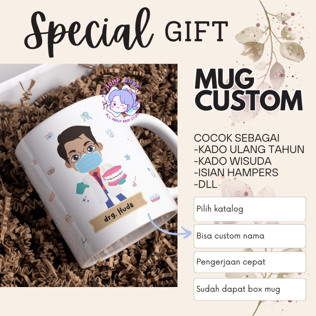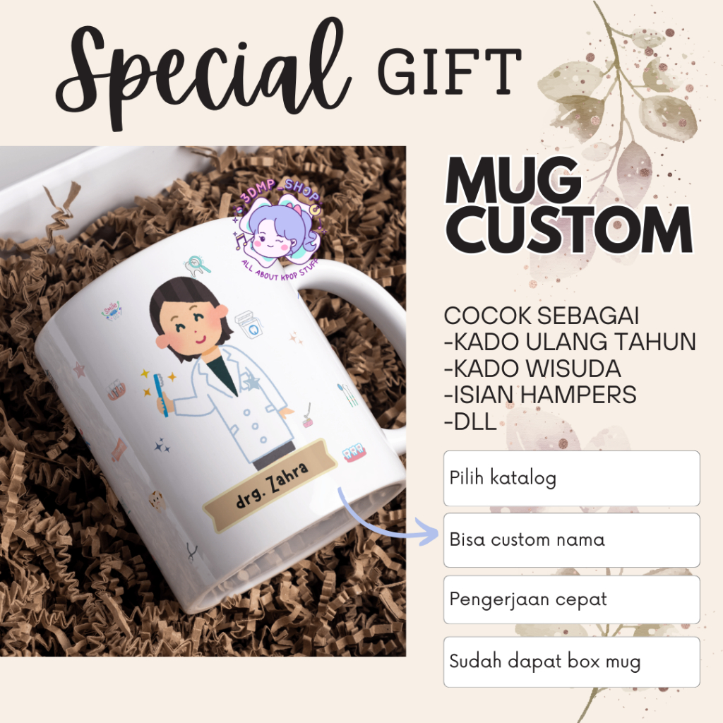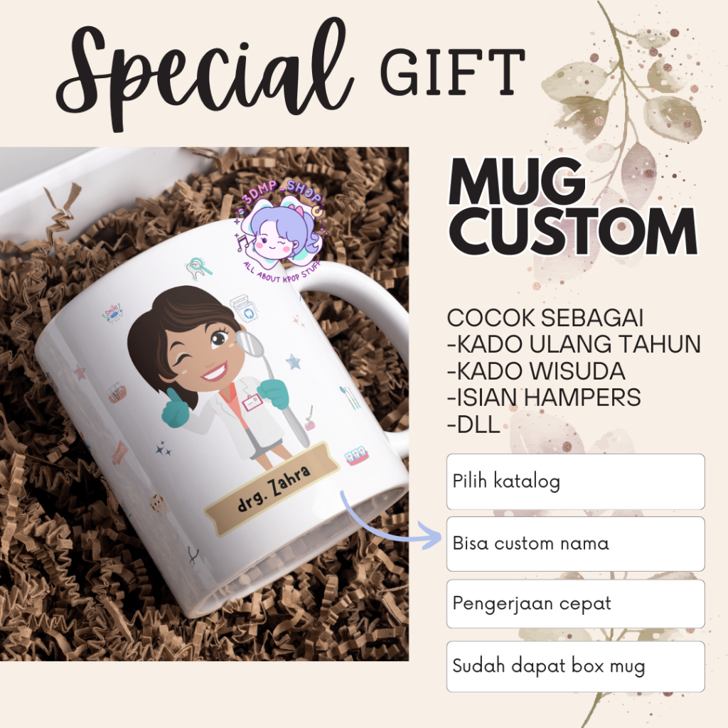 [MOHON TAMBAH BUBBLE WRAP]Mug Gelas Cangkir Request Gambar Tulisan DOKTER GIGI Gift dentist perawat Series Kado