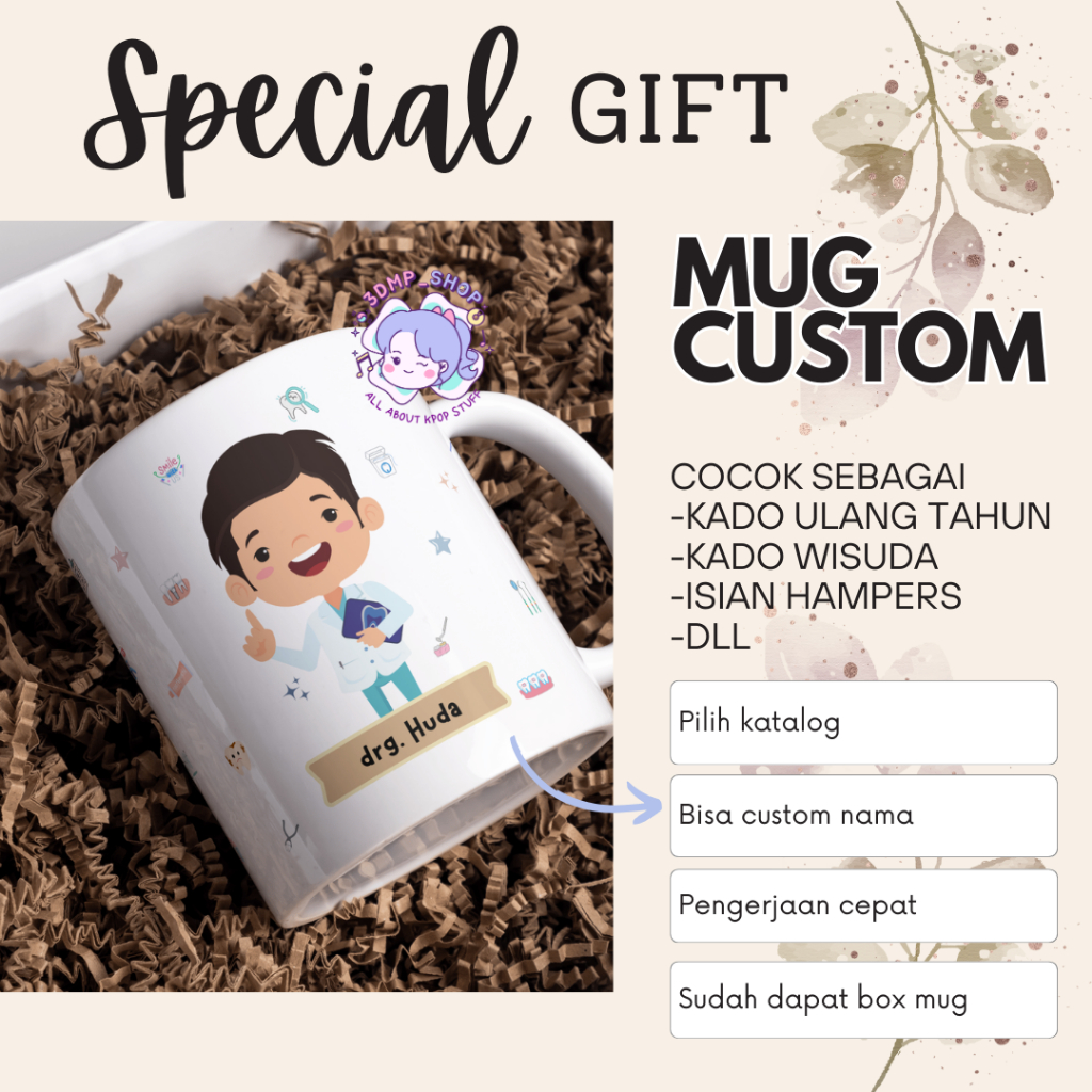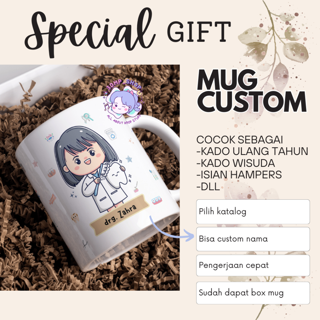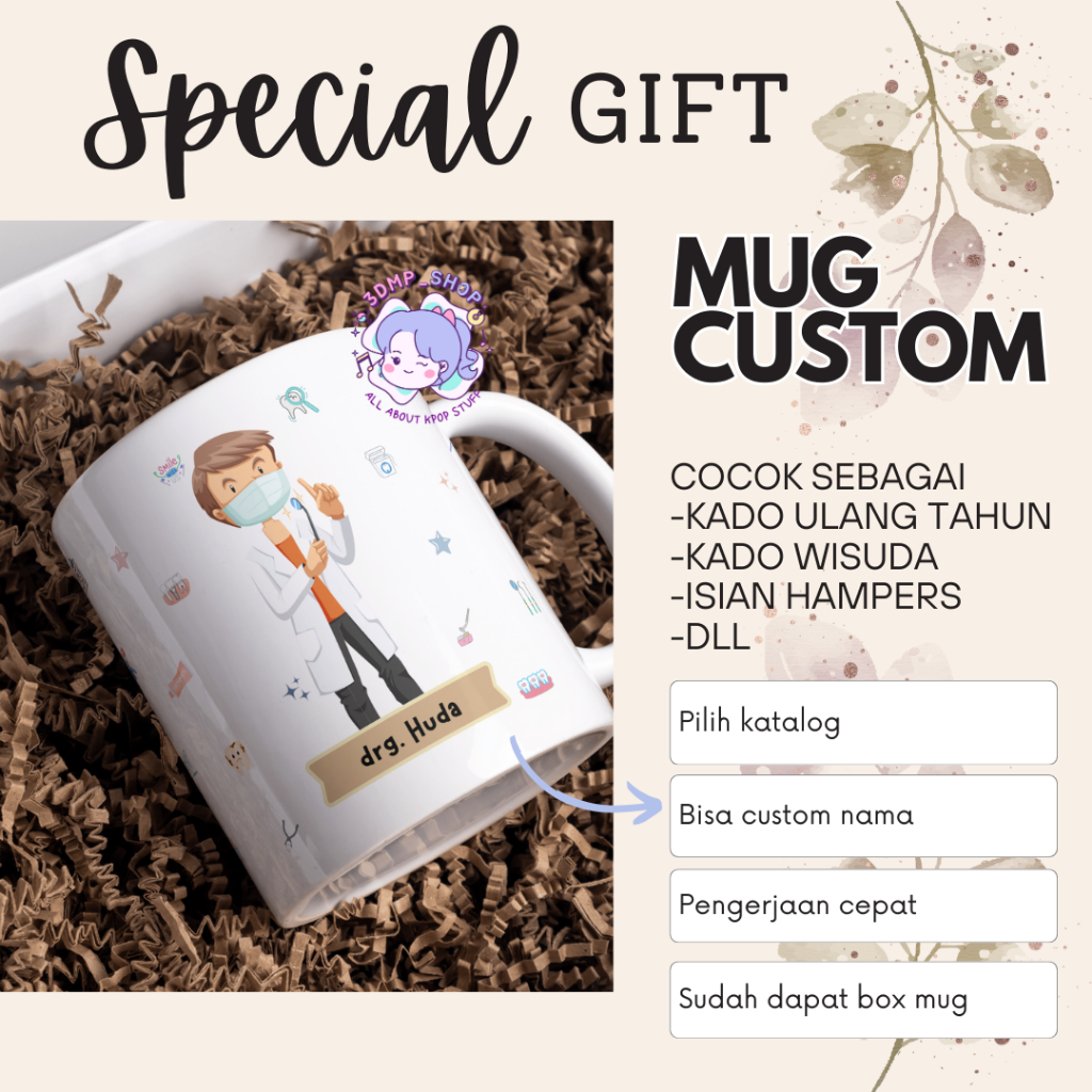 [MOHON TAMBAH BUBBLE WRAP]Mug Gelas Cangkir Request Gambar Tulisan DOKTER GIGI Gift dentist perawat Series Kado