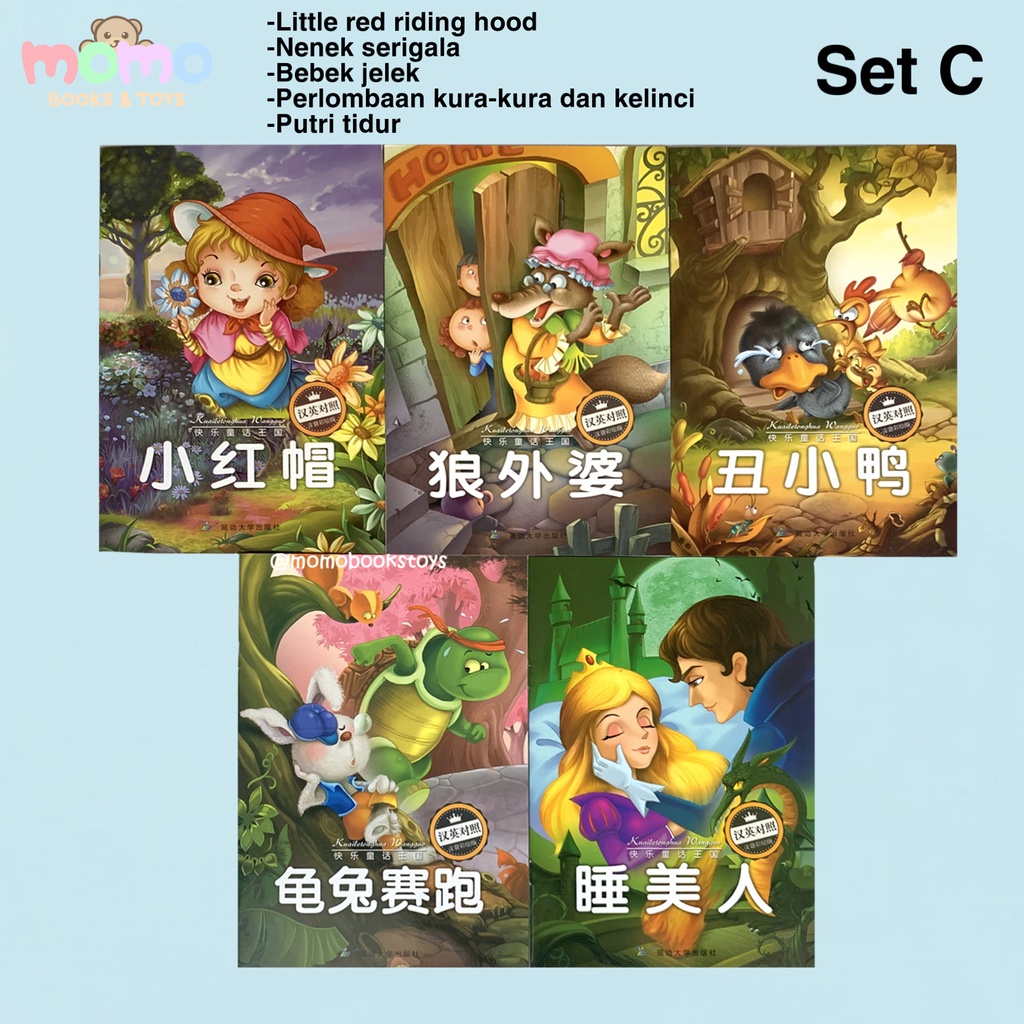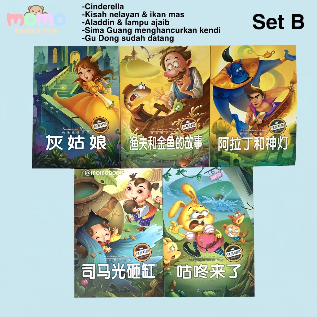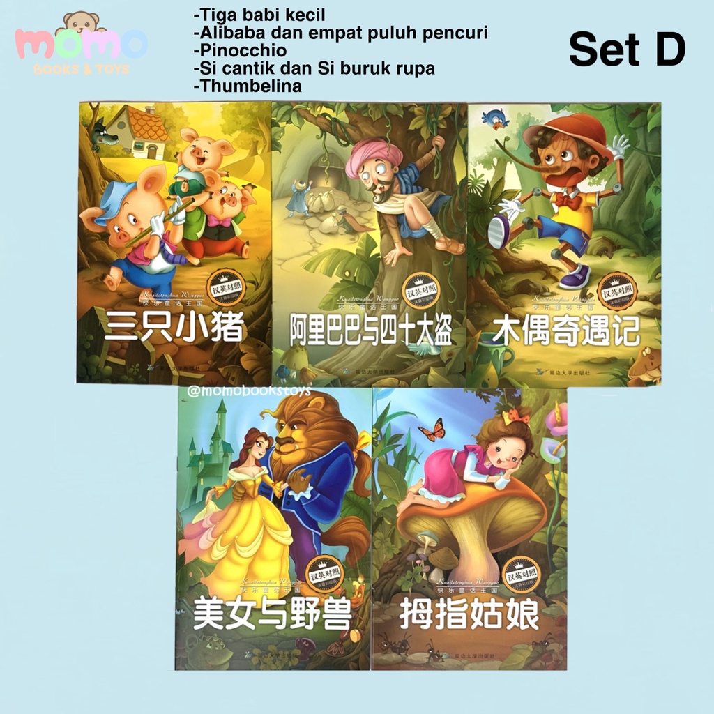 [MOMO] Buku Cerita Dongeng Anak Bahasa Inggris Mandarin (Princess) | Bilingual Story Book Full Color / Buku Dongeng Anak Snow White Cinderella Sleeping Beauty Aladdin Bergambar Berwarna TK SD / English Chinese for Children Murah