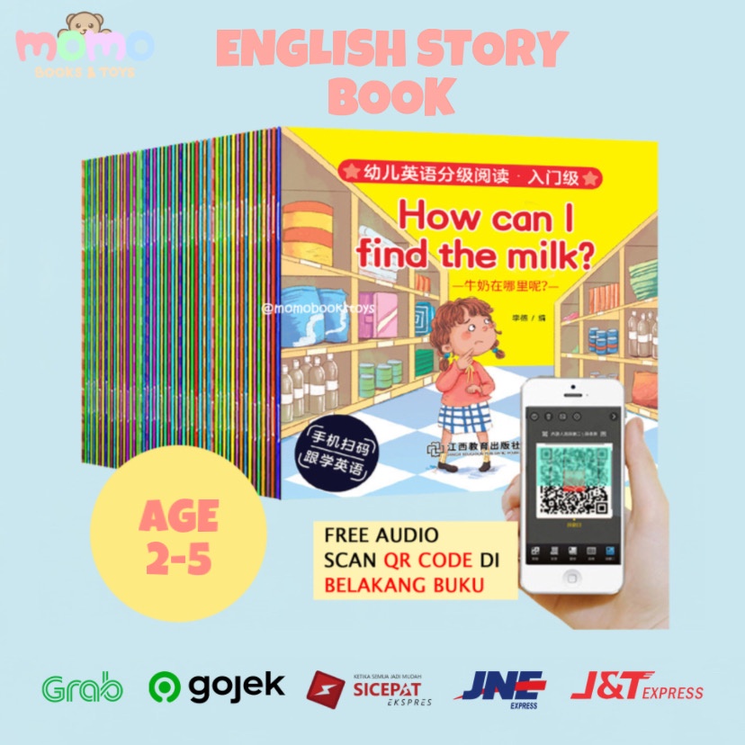 [MOMO] EB21 Paket 4 Buku Cerita Anak Bahasa Inggris (Age 2-5, Scan QR CODE) | Buku Bacaan Tidur Anak Bedtime Story English Story Book Full Color Mainan Edukasi Anak PAUD TK Umur 2 3 4 5 / English for Children Kids Paket Murah