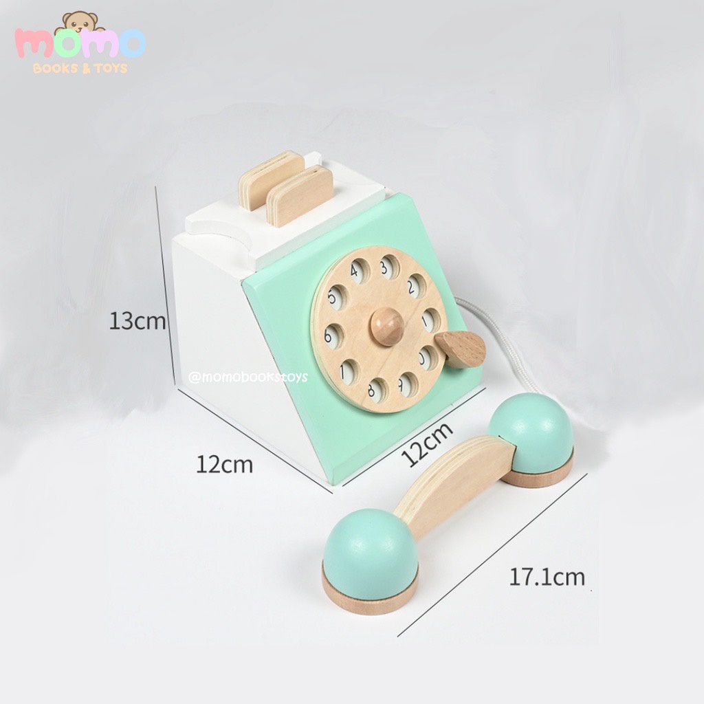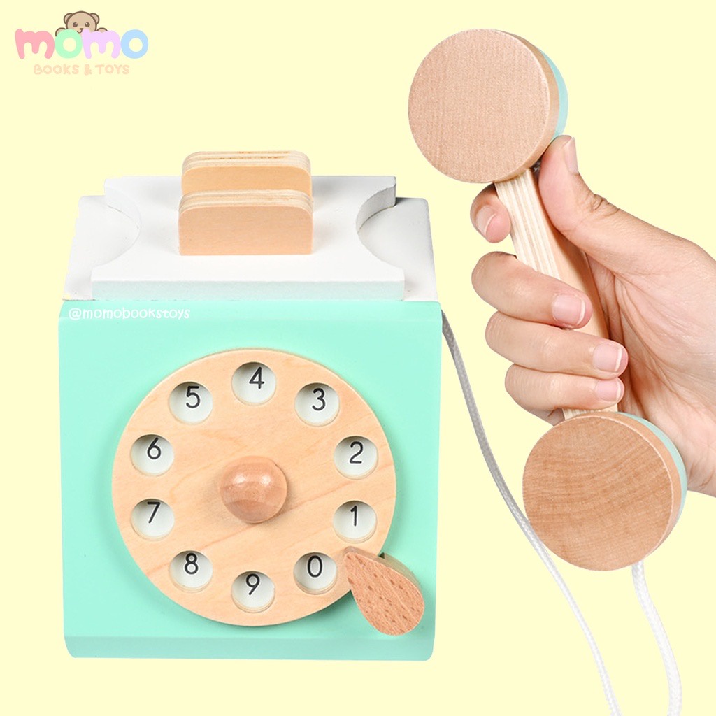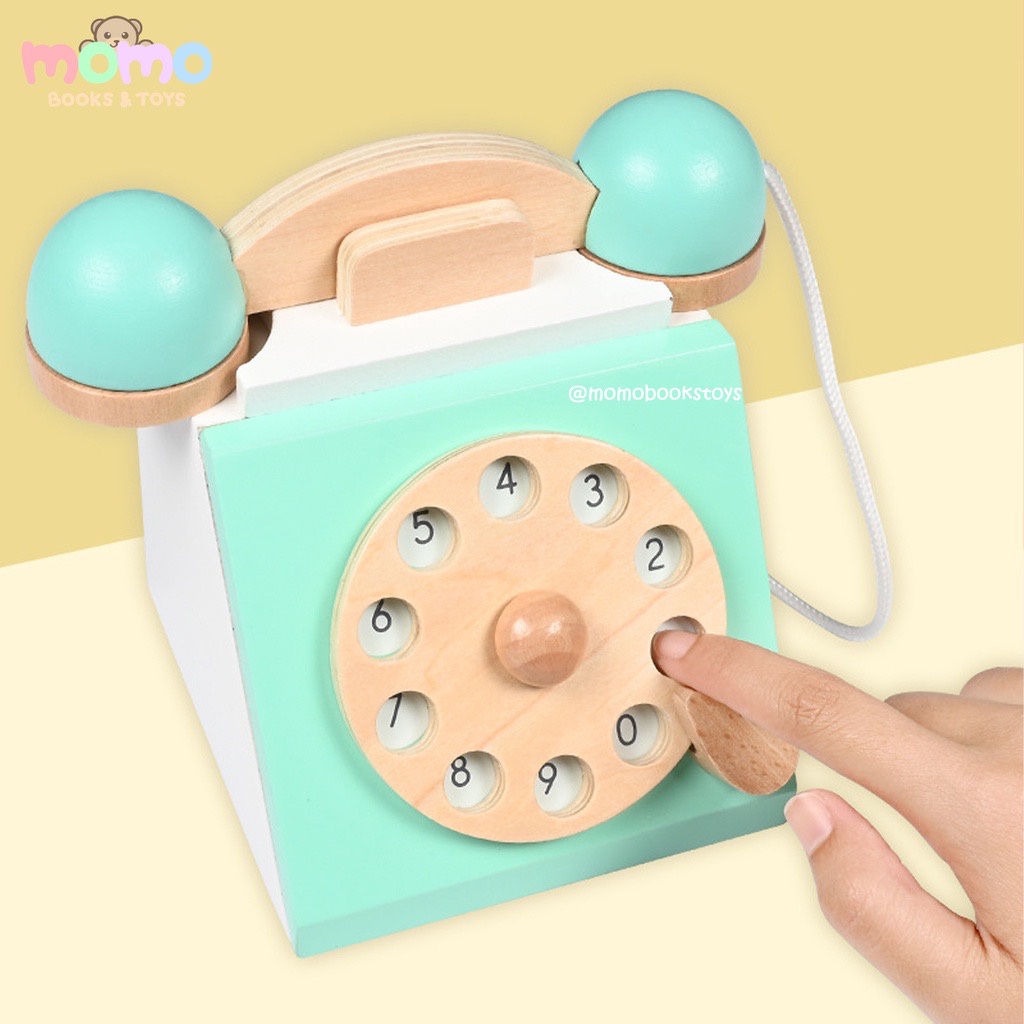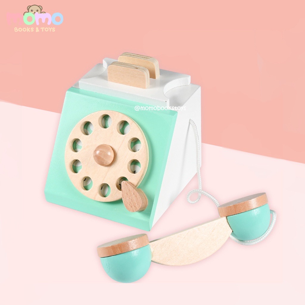 [MOMO] Wooden Telephone Toy | Mainan Anak Telpon Telponan Kayu Aesthetic Vintage | Mainan Edukasi Anak Telefon | Mainan Telpon Anak | Mainan Anak Perempuan Laki Laki | Pretend Play Wooden Toy Mainan Edukasi Anak Murah | Dekorasi Kamar Anak Lucu