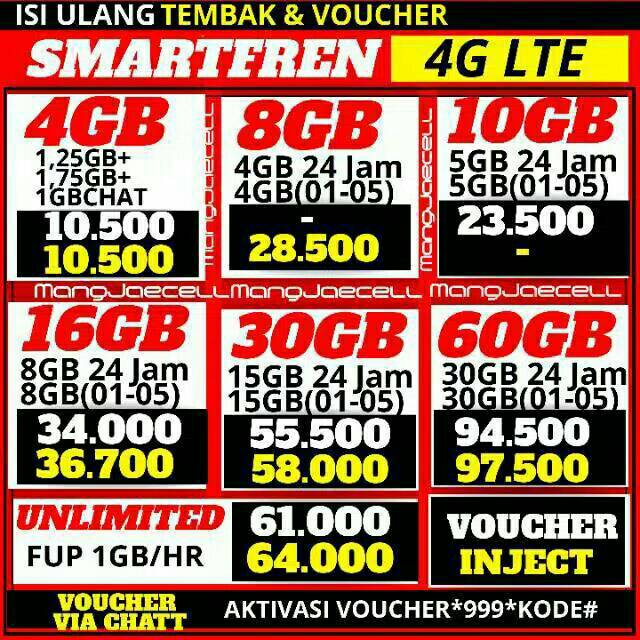 PERDANA Kuota Smartfren 3GB 16GB 30GB 45GB 60GB UNLIMITED / Tembak Langsung Nomor
