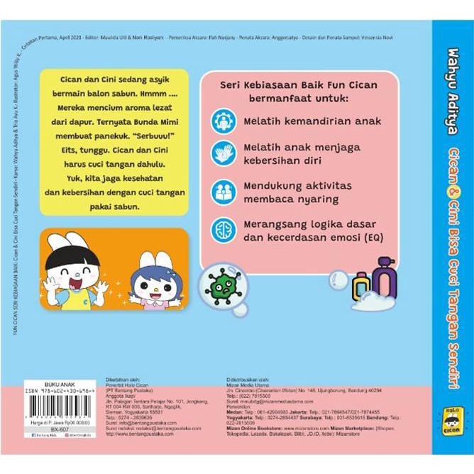 [Mizan] Seri Fun Cican: Cican&Cini Bisa Cuci Tangan Sendiri (Boardbook)-Republish