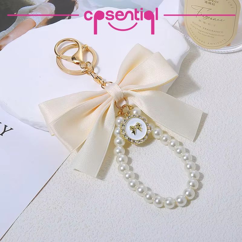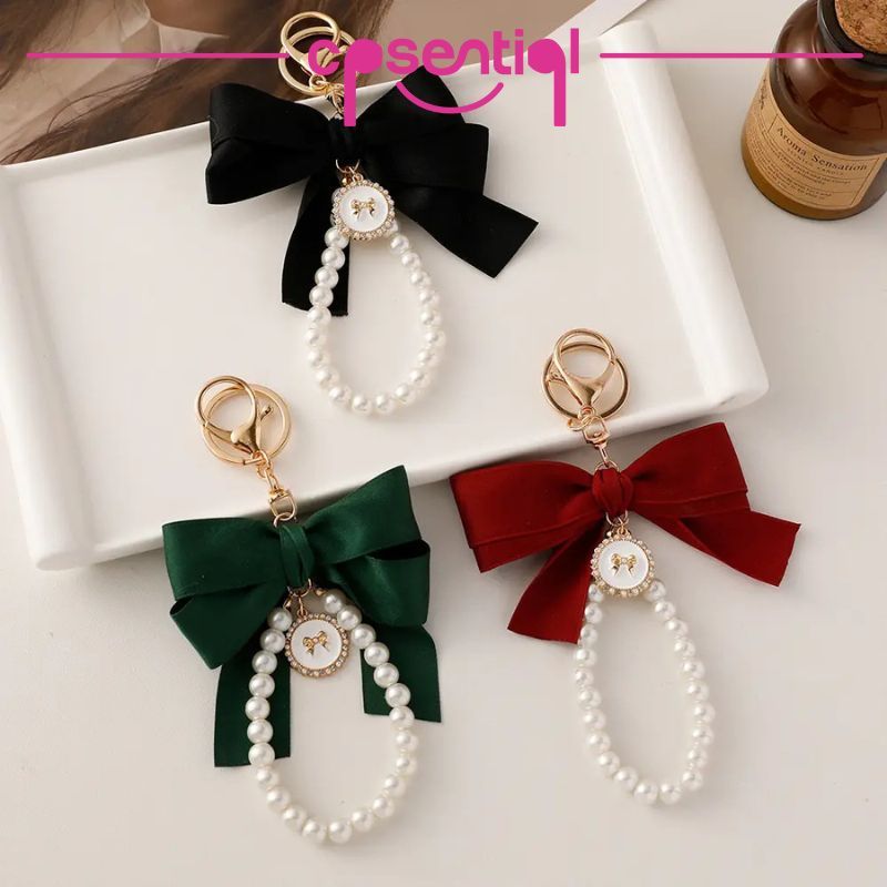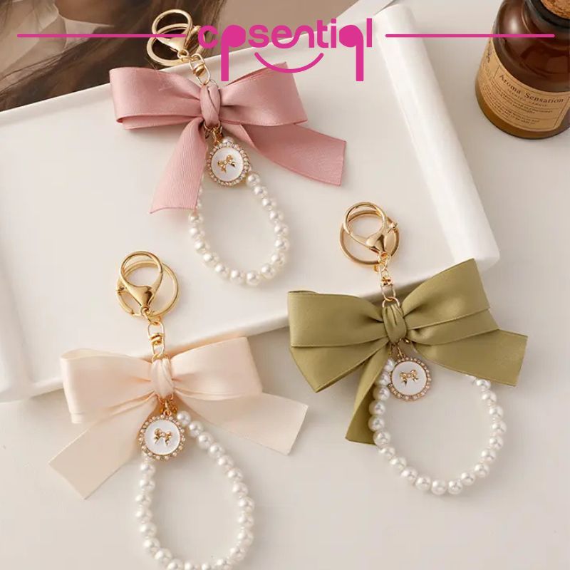 [NEW] Gantungan Kunci Pita Mutiara Clarice | Keychain Bow Pearl | Set Gantungan Kunci Cantik | Gantungan HP | Mobil Motor KeyChain | Liontin Tas
