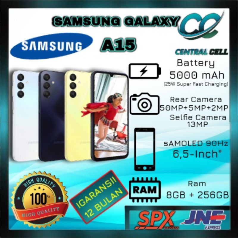 [NEW] HP SAMSUNG GALAXY A15 LTE NFC Ram 8+256GB ( Camera 50MP+13MP + Display 6,5 inches + Chipset Helio G99 + Battery 5000mAh ) GARANSI 15 BULAN ~CENTRAL CELL~