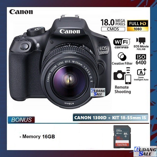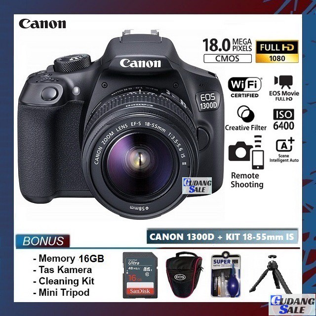 [NEW] KAMERA CANON EOS 1300D + LENSA KIT 18-55MM IS WIFI - GARANSI 1 TAHUN - CAMERA DSLR 4000D 1200D