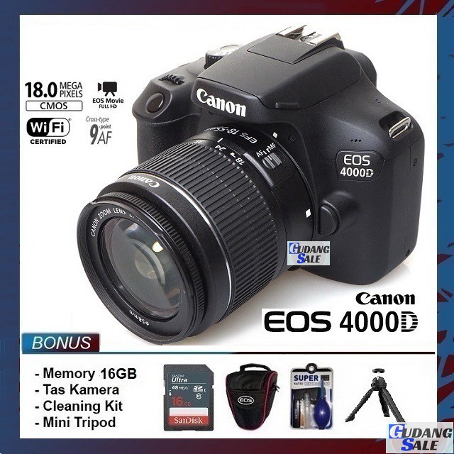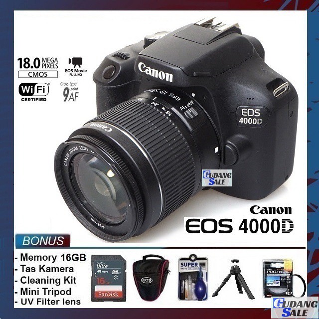 [NEW] KAMERA CANON EOS 4000D + LENSA KIT 18-55MM - GARANSI 1 TAHUN - FREE ACCESORIES CAMERA DSLR 4