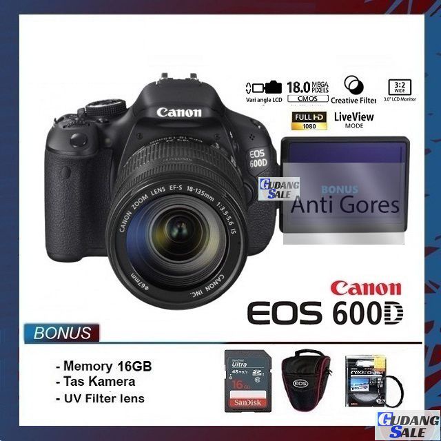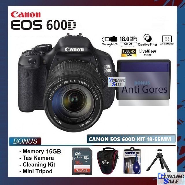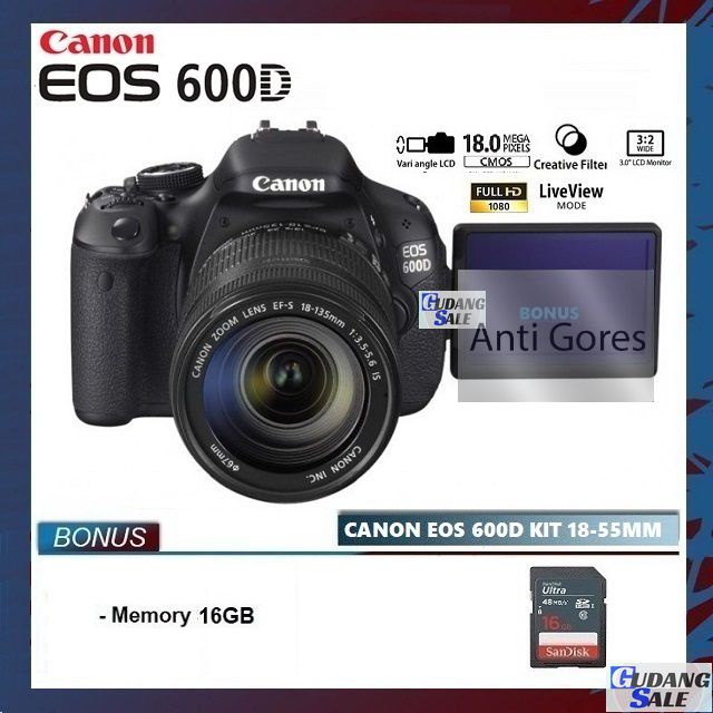 [NEW] KAMERA CANON EOS 600D + LENSA KIT 18-55MM IS - GARANSI 1 TAHUN - CAMERA DSLR 700d M100 1300D