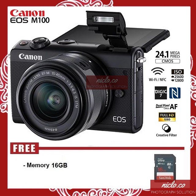 [NEW] KAMERA CANON EOS M100 + LENSA KIT 15-45MM IS STM WiFi - GARANSI 1 TAHUN MIRRORLESS 4000d 600d