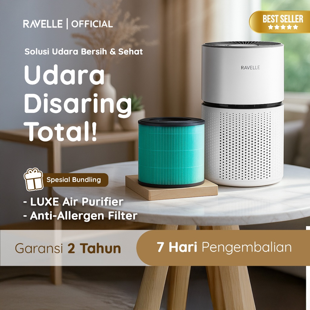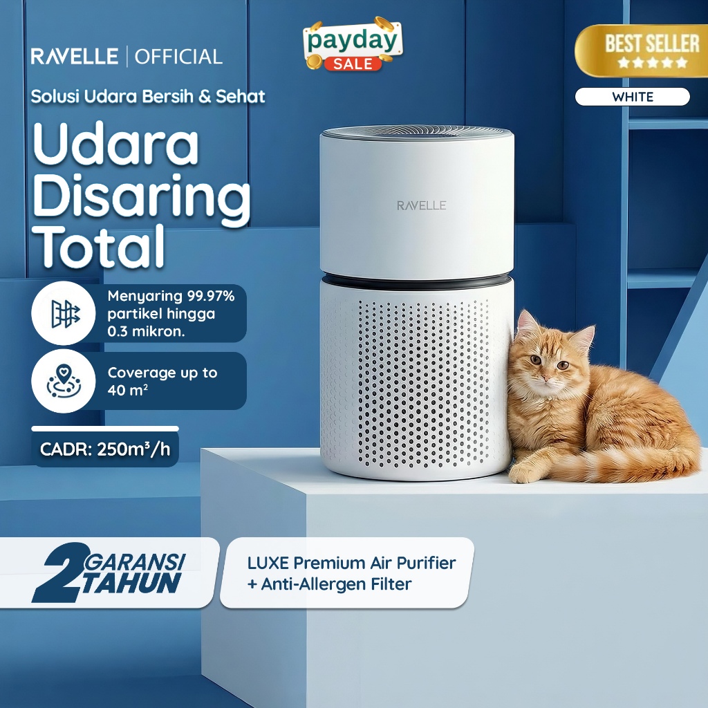 Ravelle Luxe Air Purifier HEPA H13 Anti Allergen Pet Friendly Filter CADR 250m³/h Ruangan 35m² 32W – Penyaring Udara & Anabul Friendly
