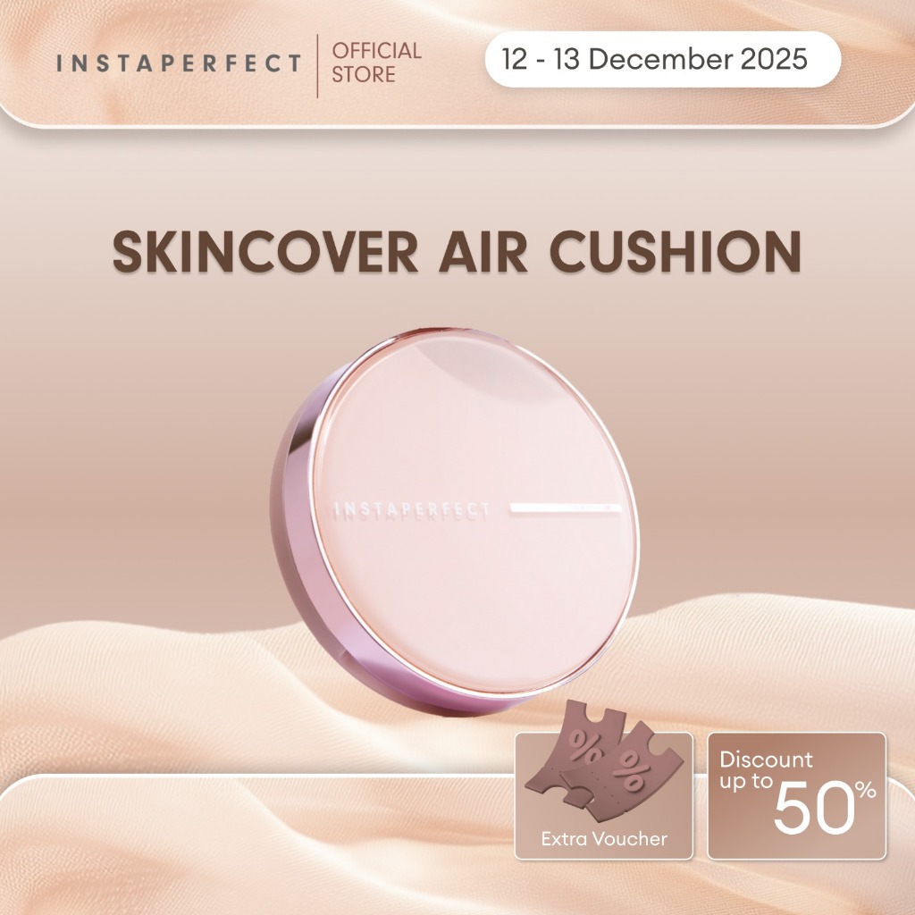 Instaperfect Skincover Air Cushion SPF 50++++ 11g - Make Up Cushion Foundation Blurring Semi Matte Finish (Real Skin Buildable Coverage, Transferproof, Non Comedogenic)- Bedak Foundation Wajah Tahan Lama