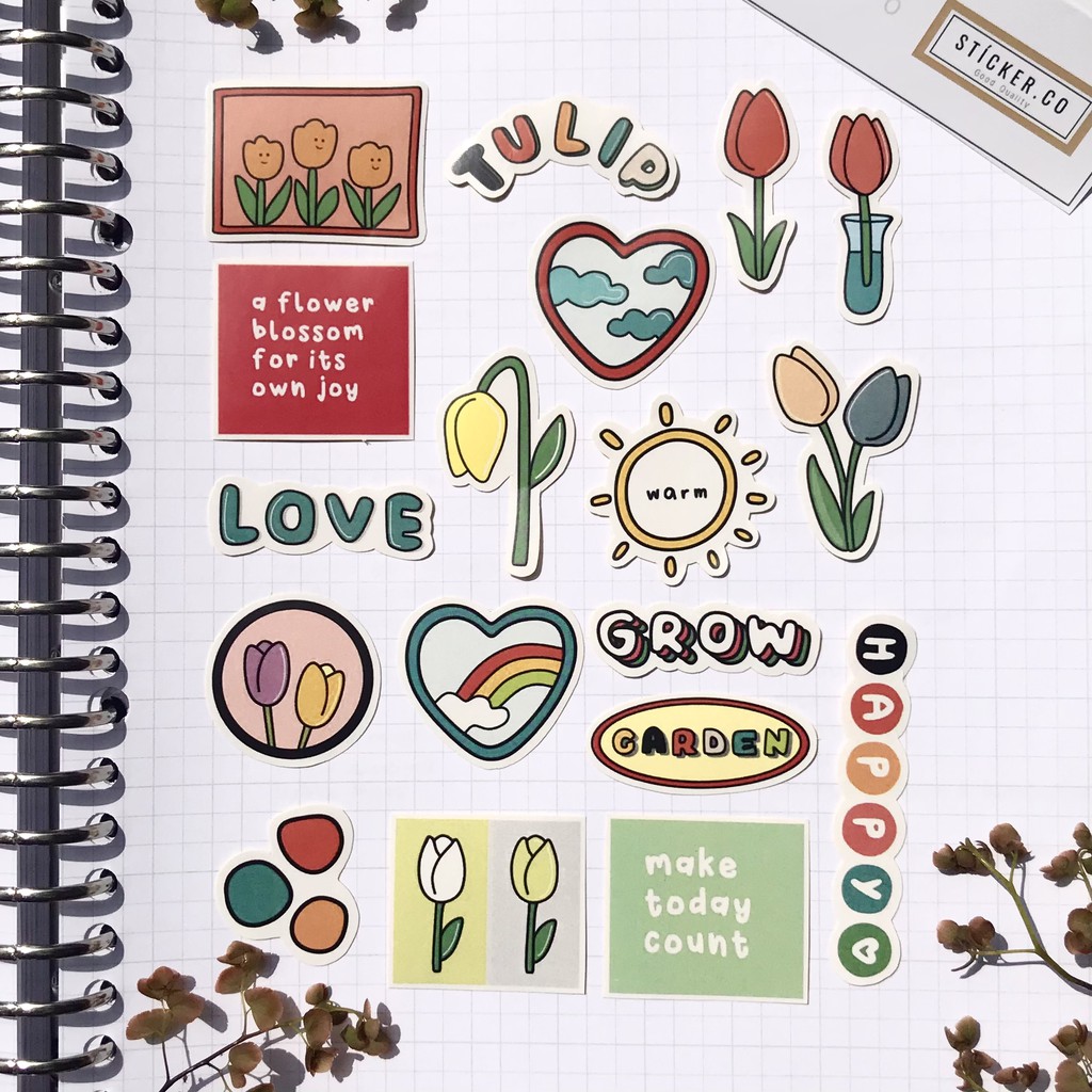 [NEW] Stiker motif tulip medium size ( 18 pcs) untuk hp laptop lettering buku custom