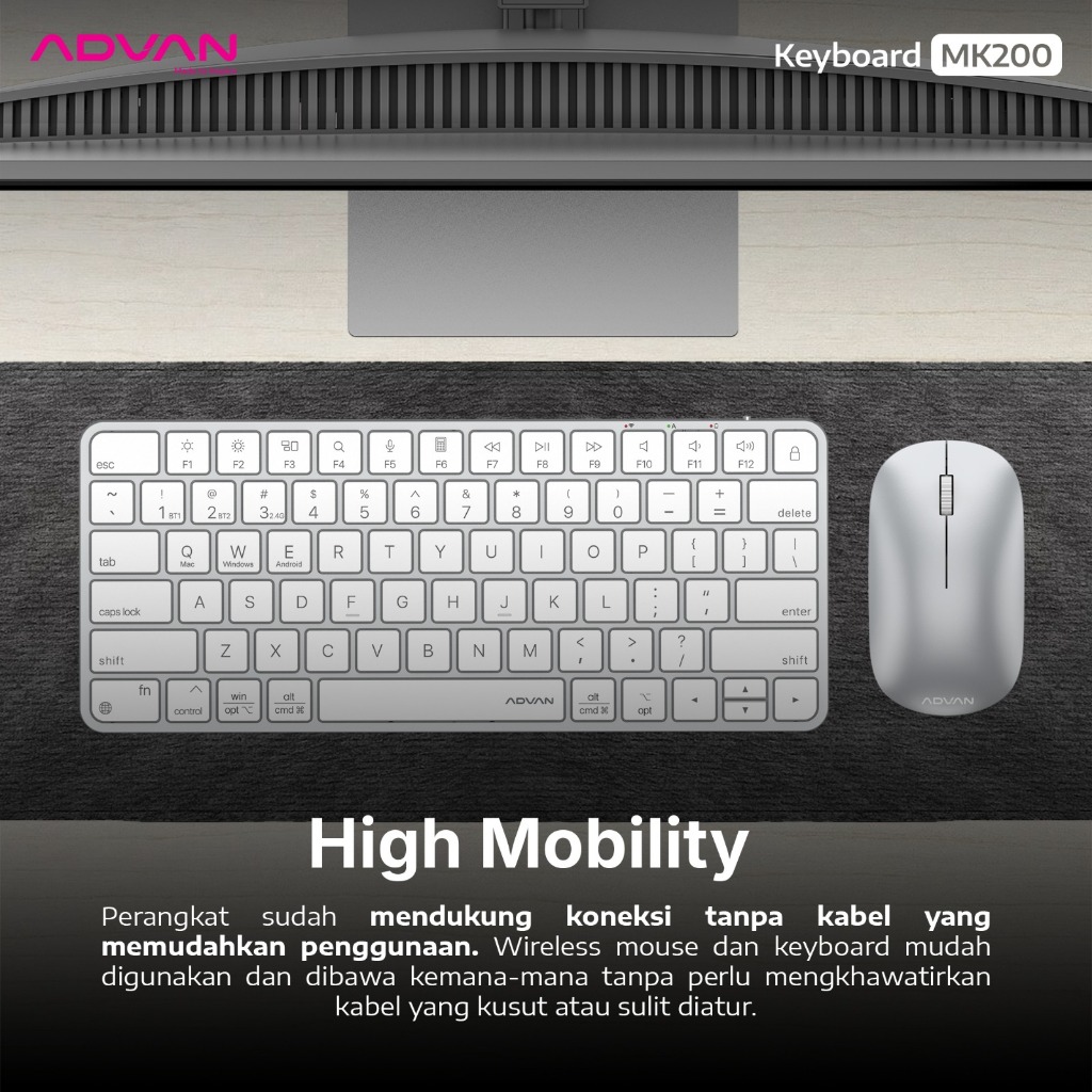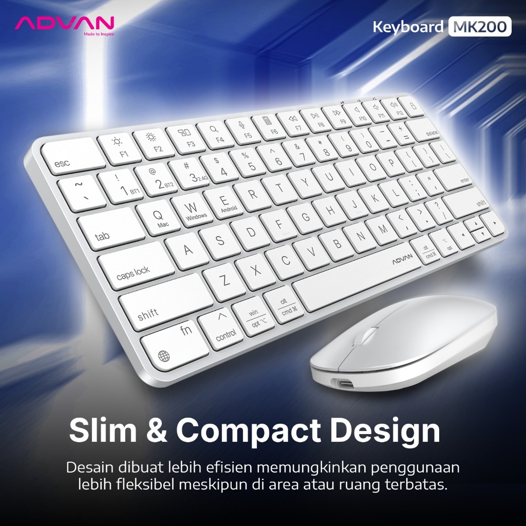 [New Launch] ADVAN Mouse & Keyboard MK200 Wireless 2.4G Bluetooth Support Windows Ios Android