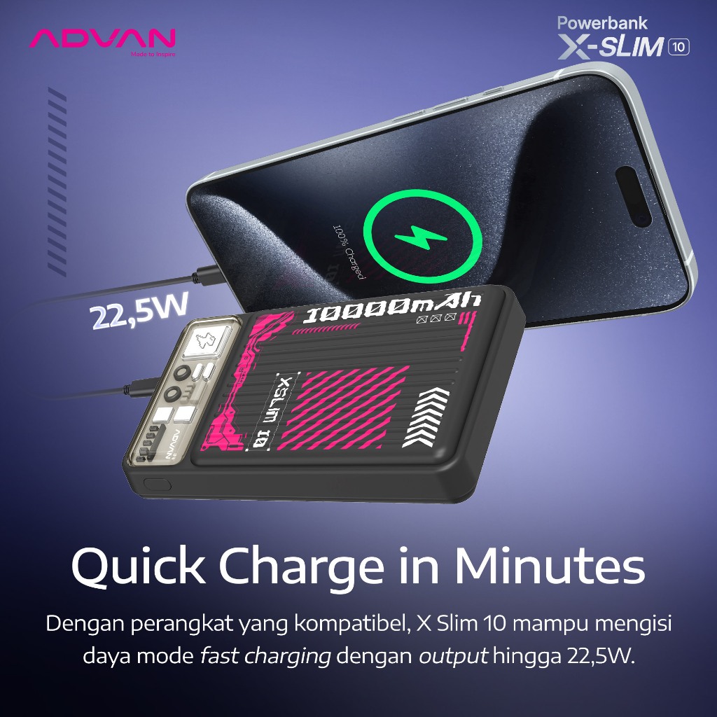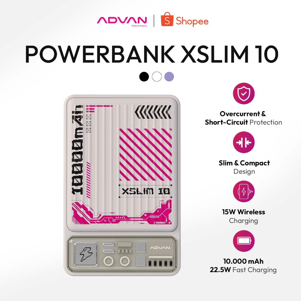 ADVAN Wireless Powerbank Xslim10 | Capacity 10.000mAh | MagSafe Fast Charging Up to 22.5W | Slim & Compact Design | Garansi Resmi 1 Tahun
