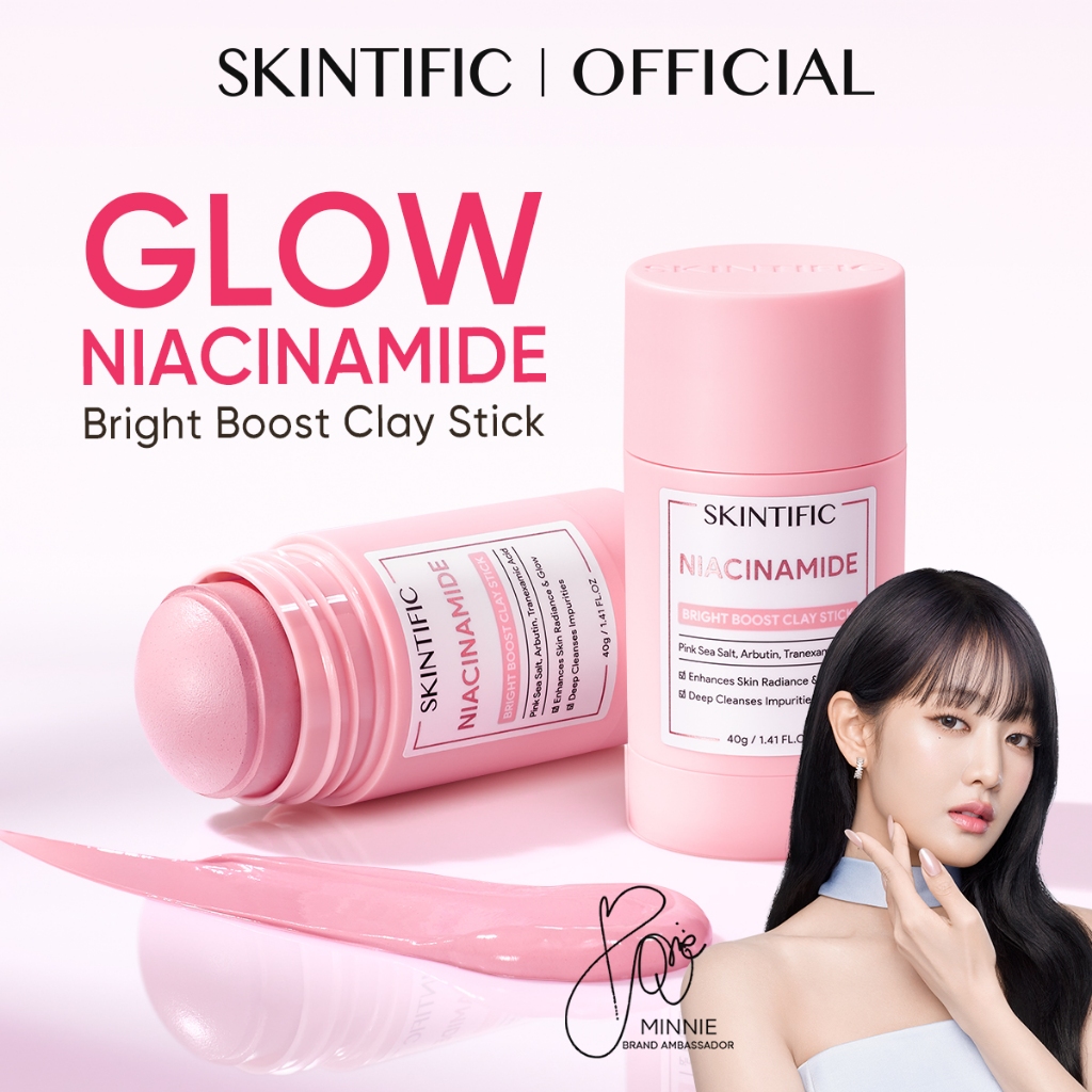 SKINTIFIC Niacinamide Bright Boost Clay Stick 40g /Masker Wajah/Skincare pemutih wajah /Kulit Wajah Cerah /Untuk kulit kusam, Noda hitam, Pori besar/Tekstur Ringan Tanpa Lengket /Aman untuk Kulit Sensitif/