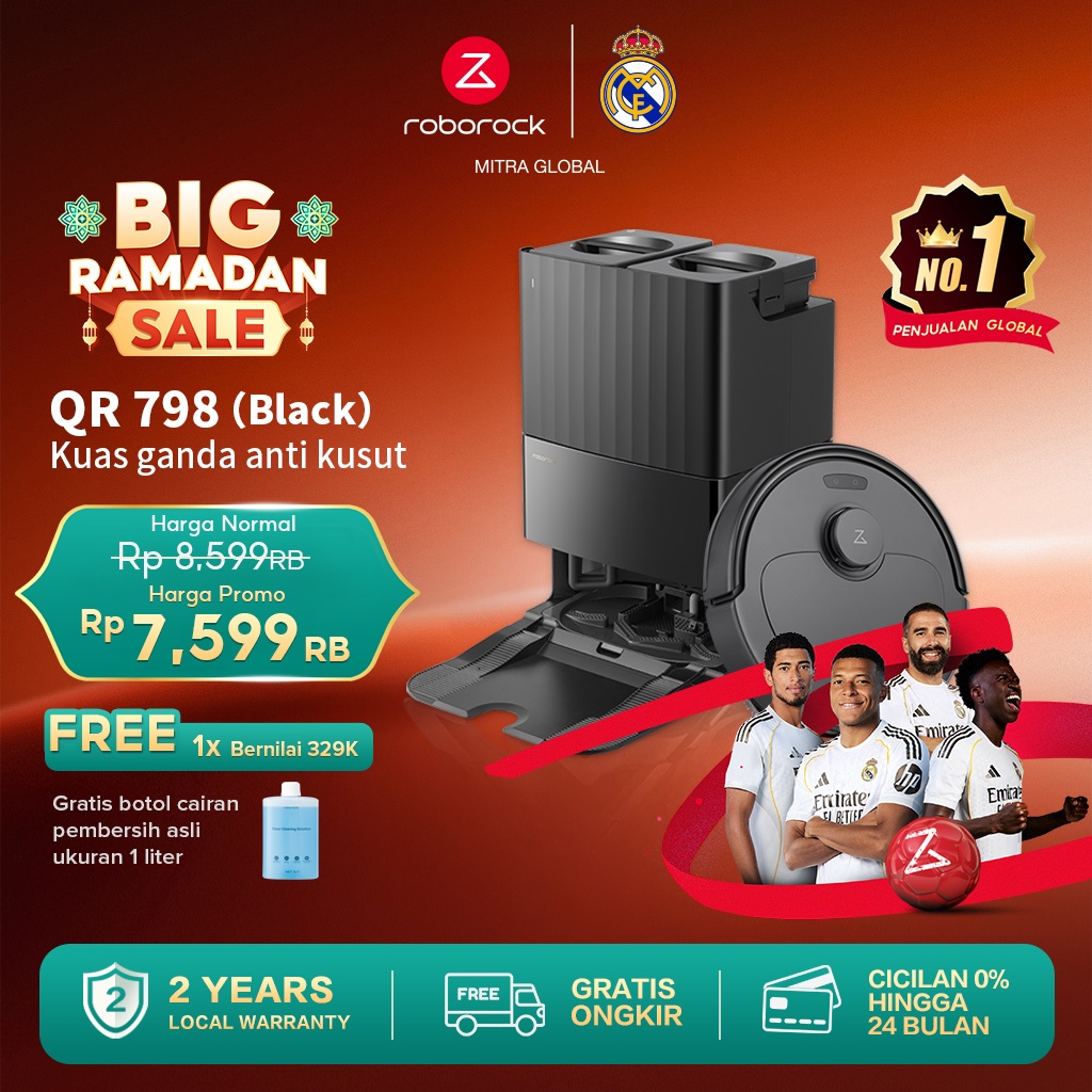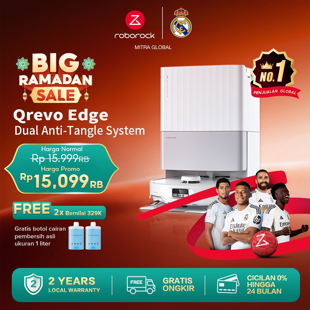 Roborock Qrevo edge 5V1 FlexiArm Technology Daya Hisap 18,500 Pa HyperForce SmartPlan 2.0 Garansi Resmi 2 Tahun