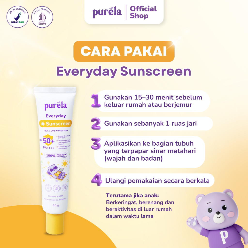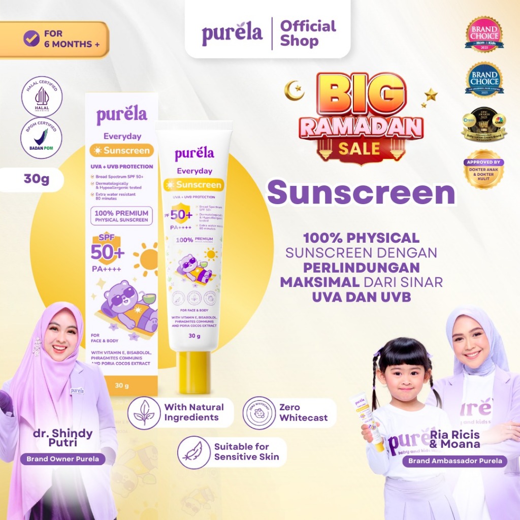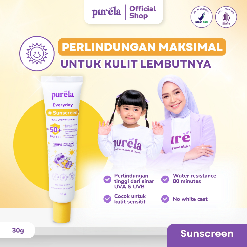 [Official] Purela Baby Physical Sunscreen SPF 50+ PA++++ 30 gr , Water Resistant, Suitable for Sensitive Skin, Dermatologically & Hypoallergenic, Skincare Untuk Bayi & Anak