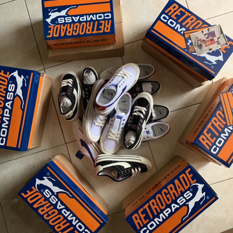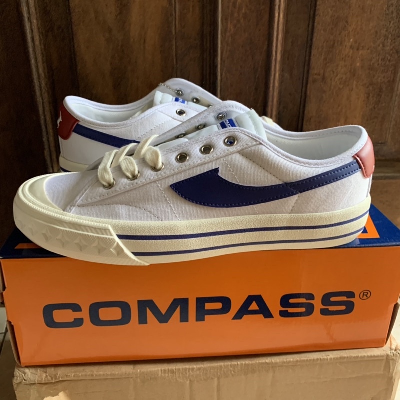 [ ORIGINAL 100% ] SEPATU COMPASS RETROGRADE LOW WHITE BLUE