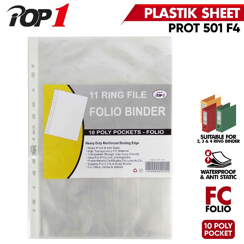 [PAK] POP1 FILE FOLIO BINDER SHEET PROTECTOR 501-4 RING FILE FOLIO BINDER POLY POCKET ISI 10 LEMBAR*