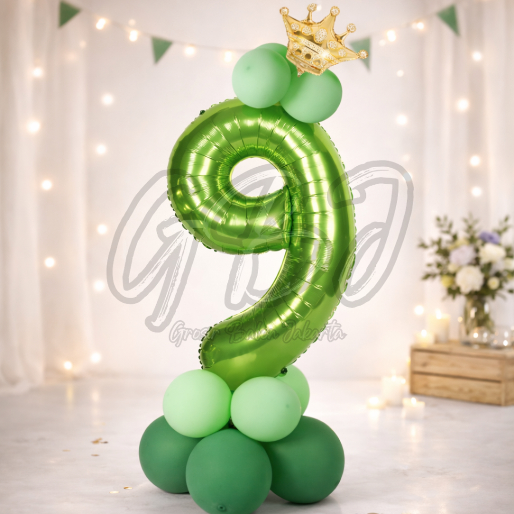 [PAKET ANGKA] - JUMBO Hijau Muda Mahkota Emas Silver / Set Angka Full Kombinasi Hijau