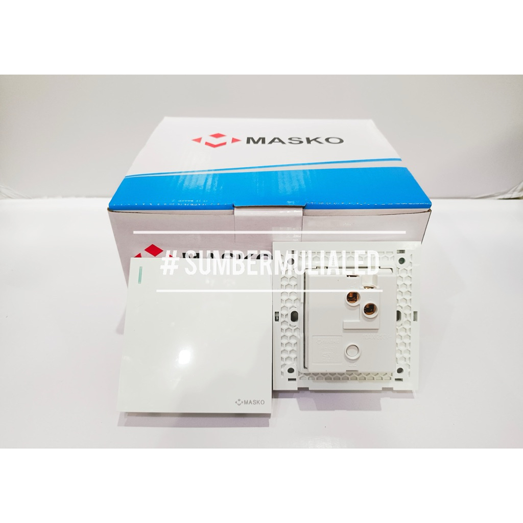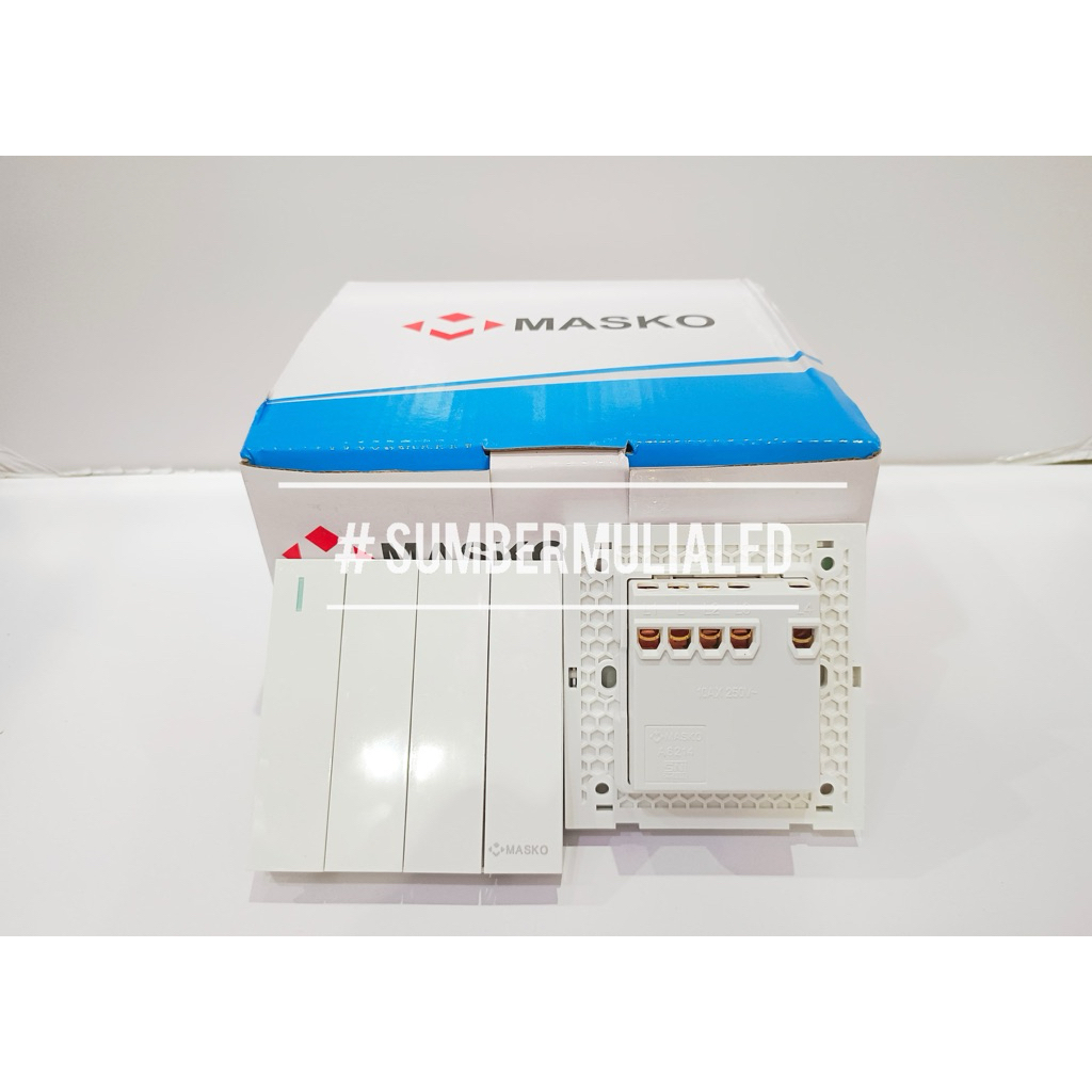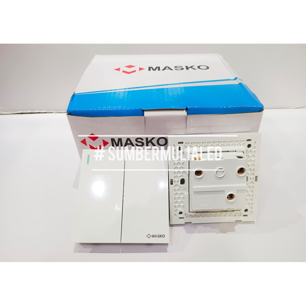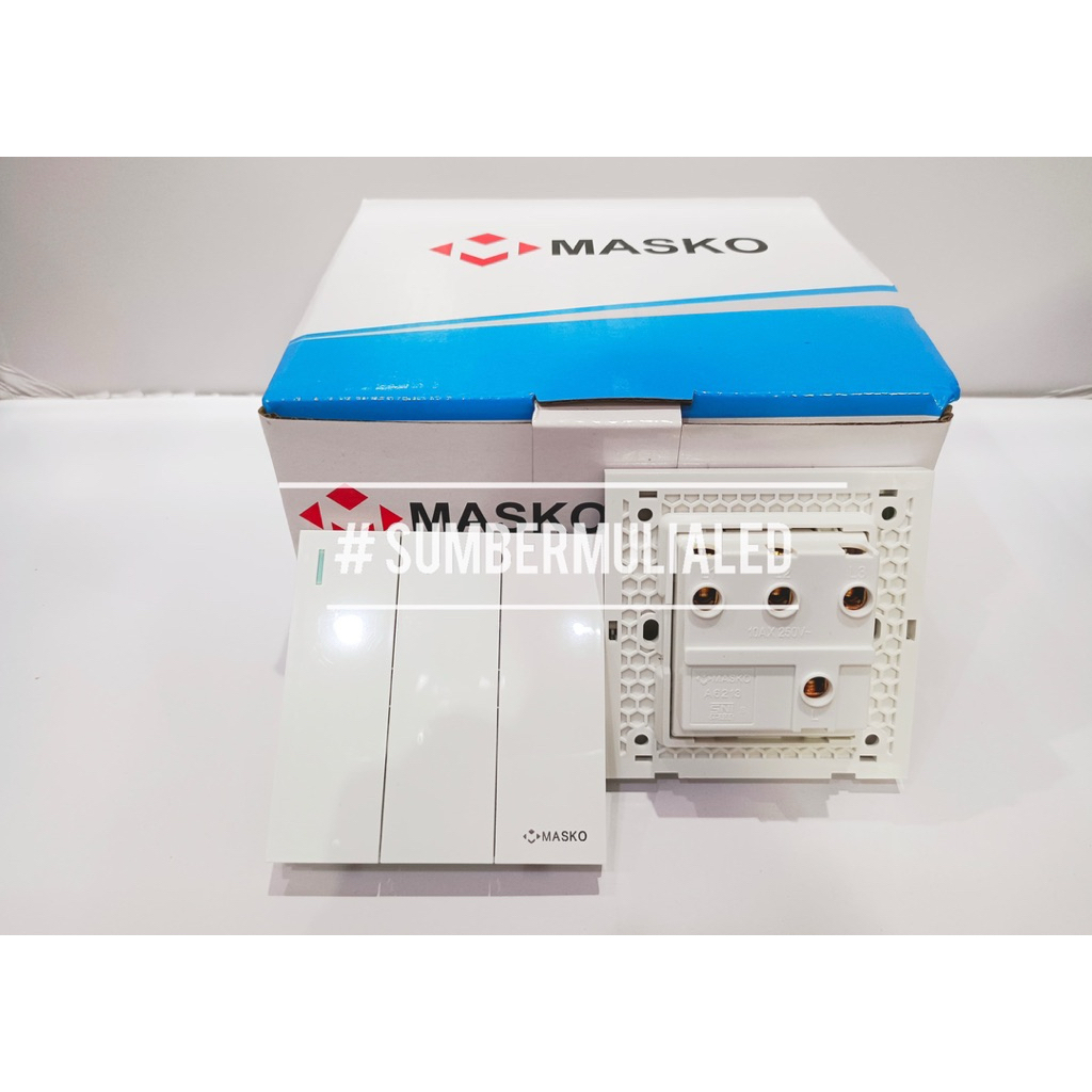 [ PAKET HEMAT 1 BOX ISI 10 PCS ] MASKO AUSTIN Saklar Engkel Tunggal, Seri Ganda Double, Triple 3 Gang, 4 Gang, Stop Kontak Socket Outlet MEWAH PUTIH MINIMALIS HARGA GROSIR