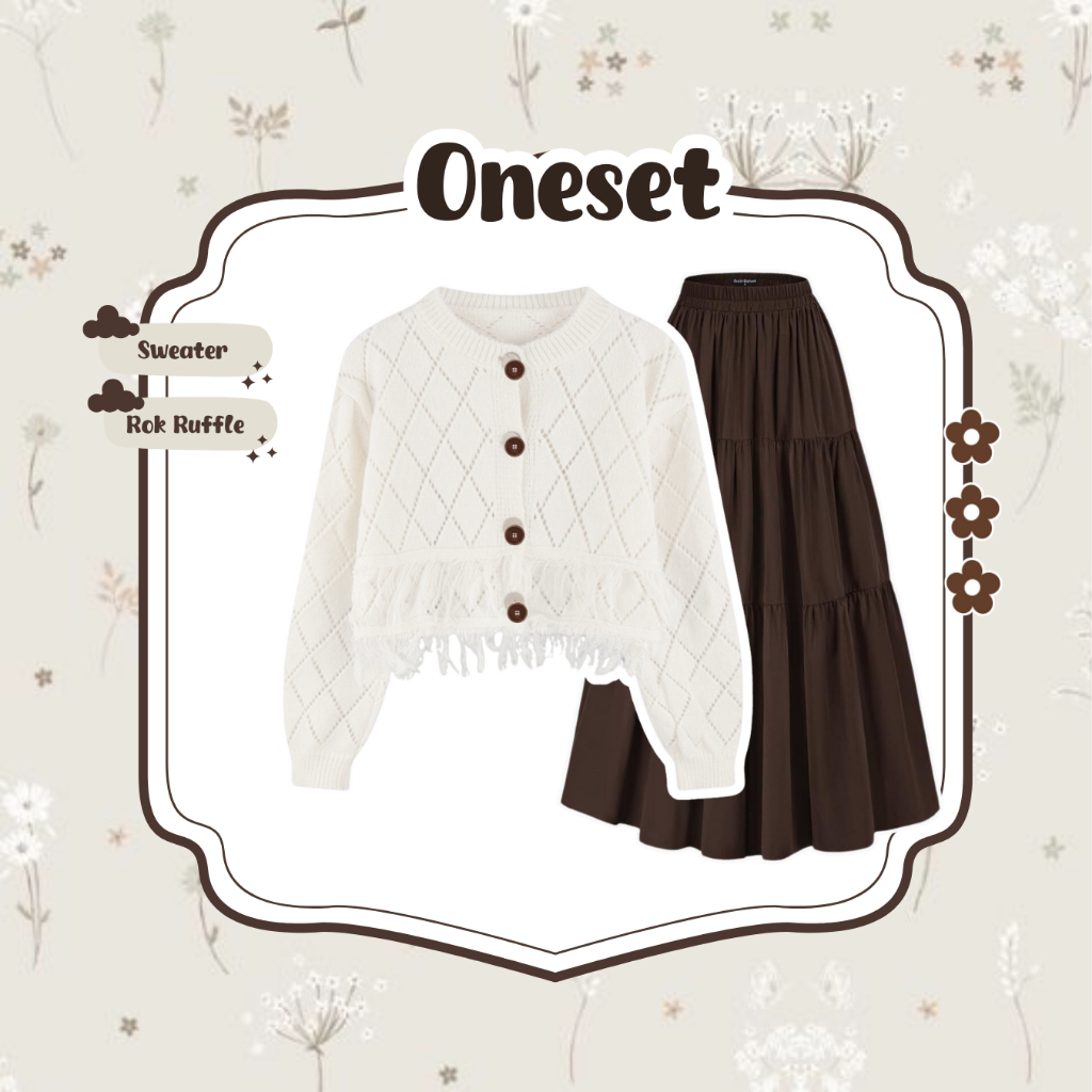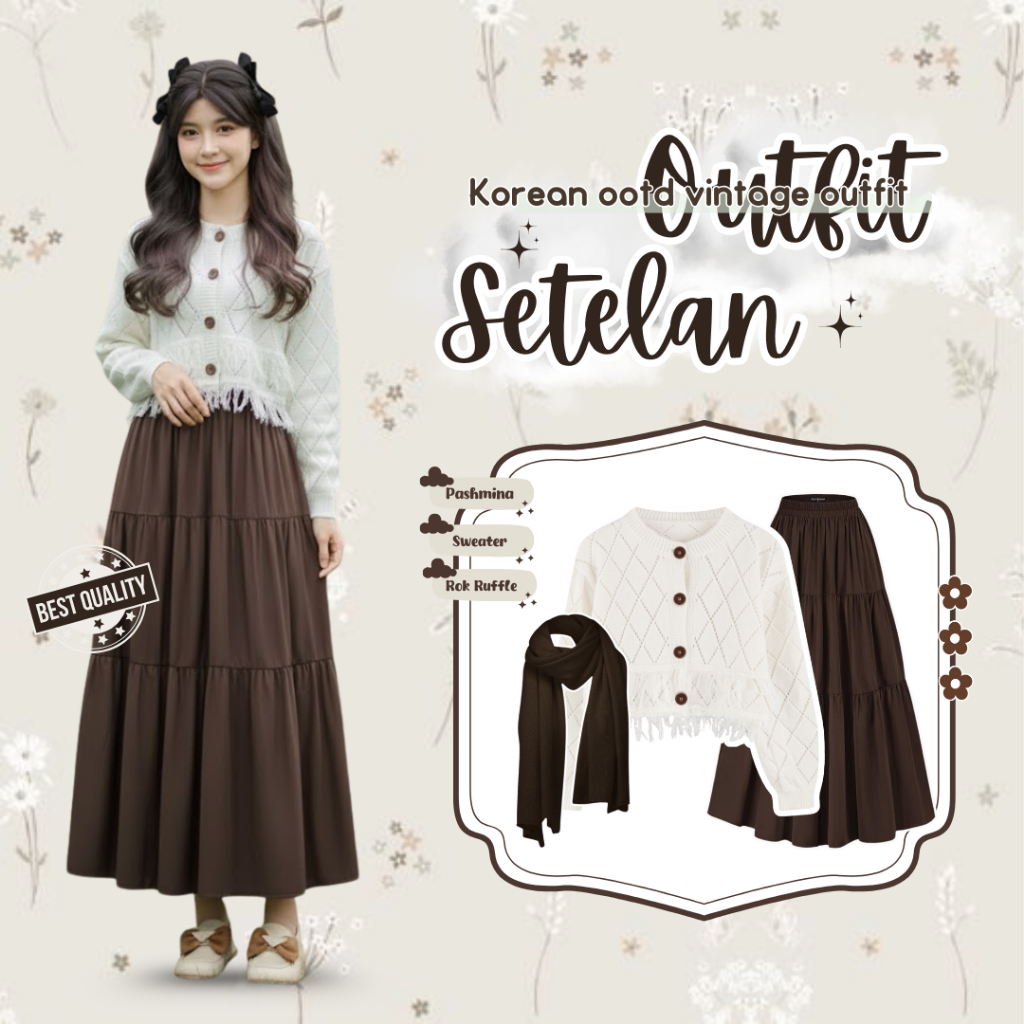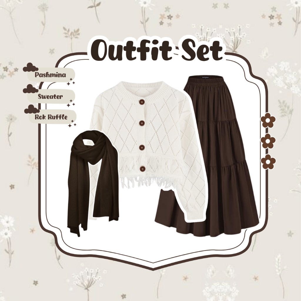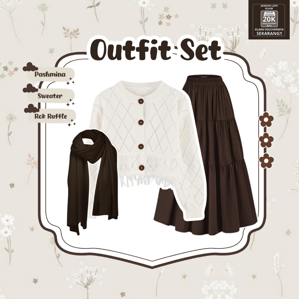 [PAKET MURAH] One Set Rok Aesthetic (Pashmina, Cardigan, Rok Hyget) OOTD 1 Set Remaja - Alio