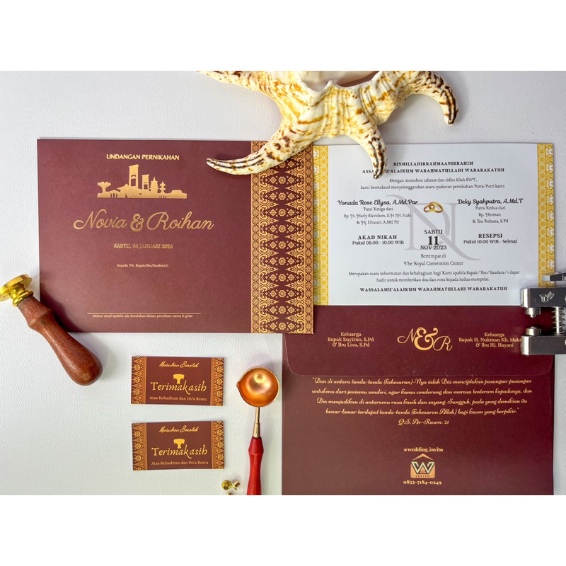 [PALEMBANG-Ampera Foly] Cetak Undangan Batik-Gold Hardcover Amplop Pernikahan Separasi Custom Kertas/Paper Wedding Invitation Padang