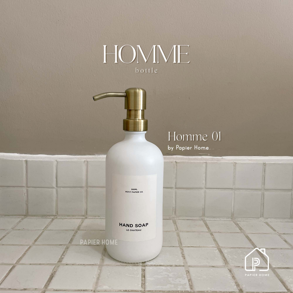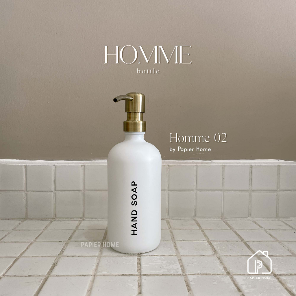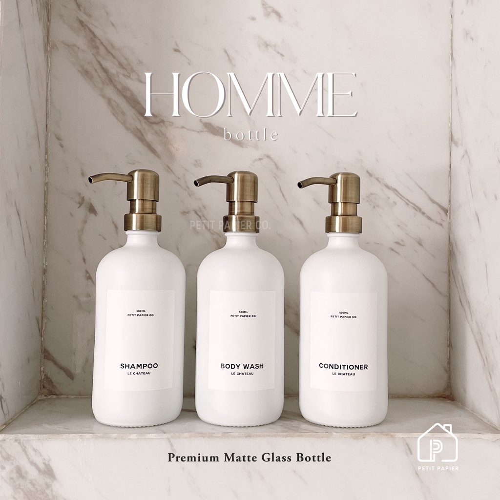 [ PAPIER HOME ] HOMME WHITE Botol Kaca Bathroom Glass Bottle Matte Dispenser Sabun Shampoo Refill