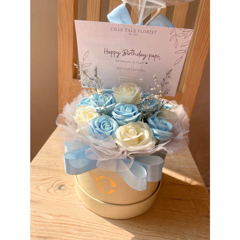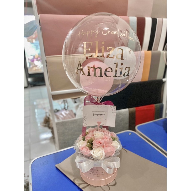 [PO 1 HARI] SOAP BLOOM BOX + STUFFED BALLOON - BUNGA SABUN DAN BALON / bunga sabun / dekorasi / buket bunga / bucket bunga / hadiah wisuda / bloom box / balon bobo