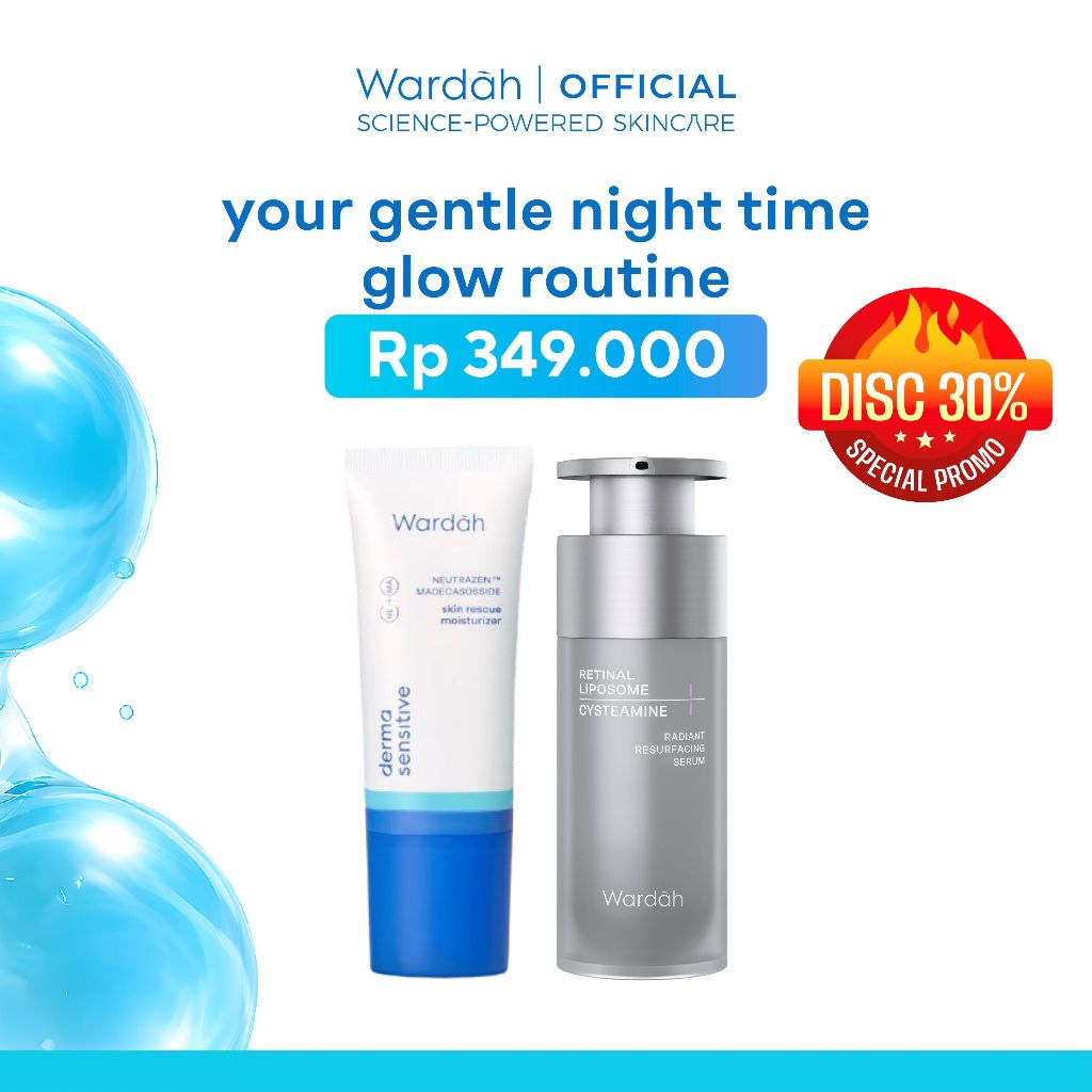 WARDAH Radiant Resurfacing Retinal Cysteamine Serum 30 ml - serum mencerahkan wajah, serum brightening, retinol, Peeling Eksfoliasi Wajah Exfoliating Essence Mengangkat Sel Kulit Mati Membersihkan Anti Acne Jerawat Mengencangkan gloglowing skincare