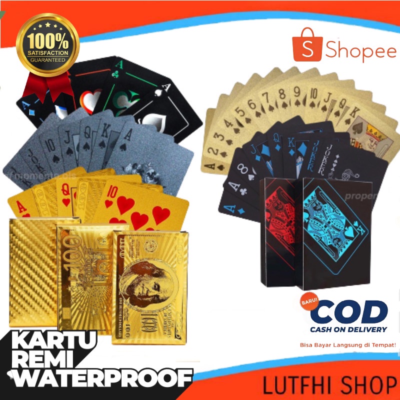 [PREMIUM] Kartu Remi Waterproof Kartu Remi Plastik Anti Air Kartu Remi PREMIUM Kartu remi Mika Kartu Sulap Hitam Gold Black Jack Card Poker Poker Emas Lapisan Gold Foil