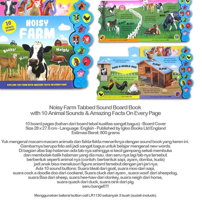 [PRODUK GWAhj] [Igloo Books] Noisy Farm / Baby Animals / At The Zoo / Awesome Dinosaurs / In The Ocean / Things That Go / All About Music / Amazing Space Tabbed Sound Board Book With 10 fun sounds IPE
