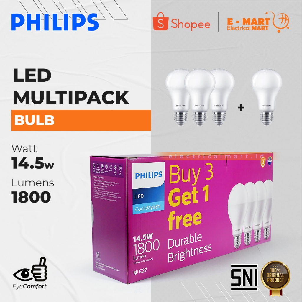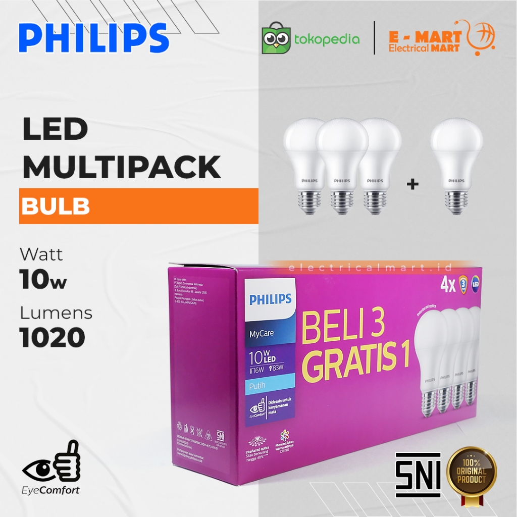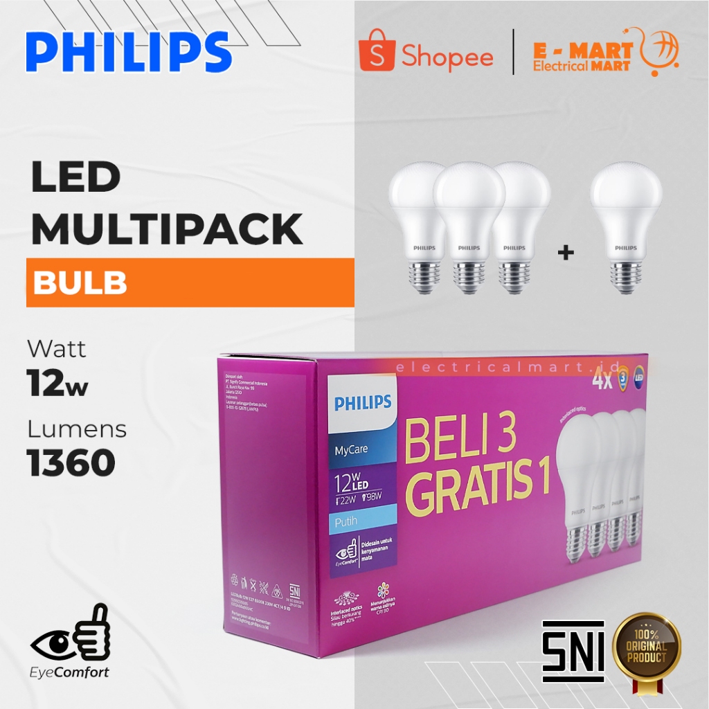[ PROMO PAKET BELI 3 GRATIS 1] PHILIPS LED Bulb Paket / Lampu Bohlam LED Putih MULTIPACK 4 6 8 10 12 W WATT
