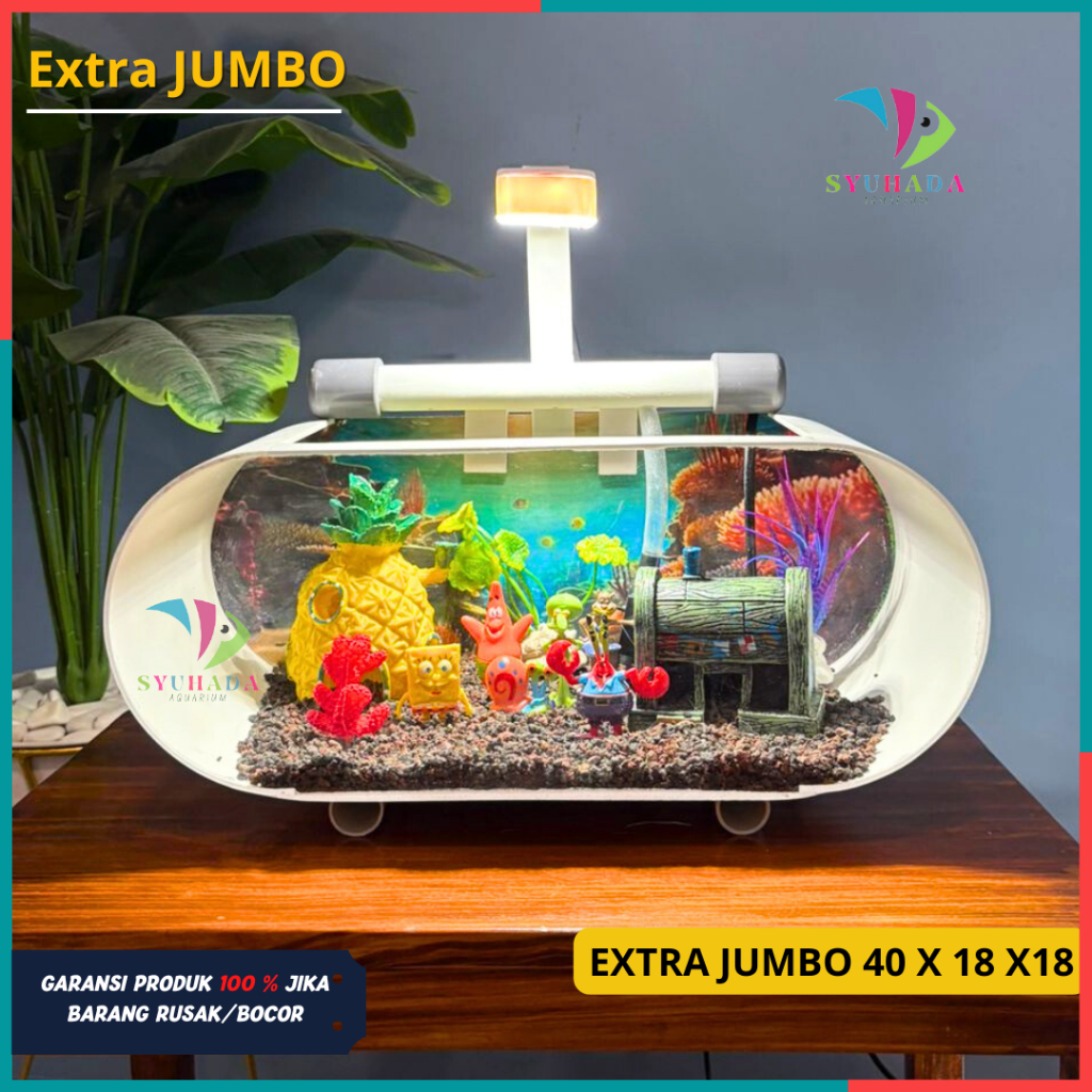 Aquarium Extra Jumbo Ukuran 40 x 18 x 18 Set lengkap tinggal pakai (Extra JUMBO)