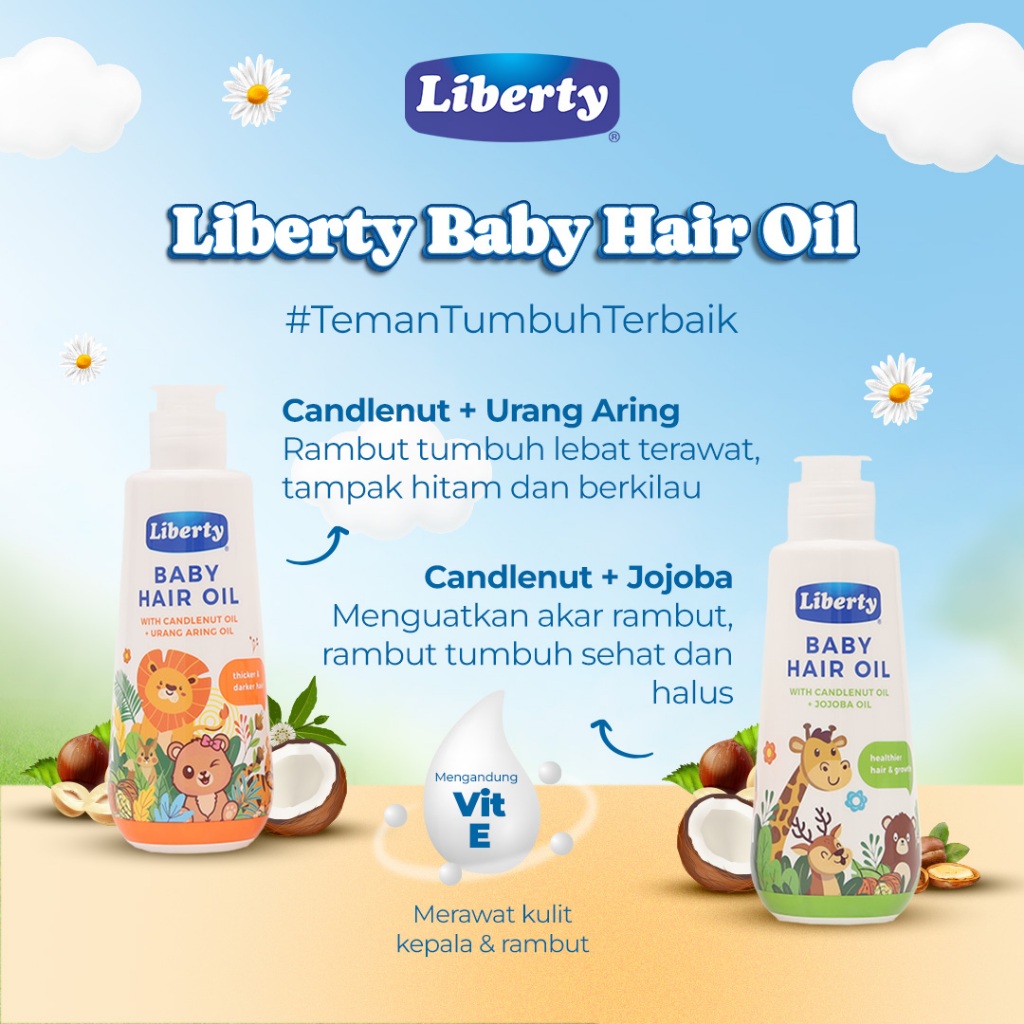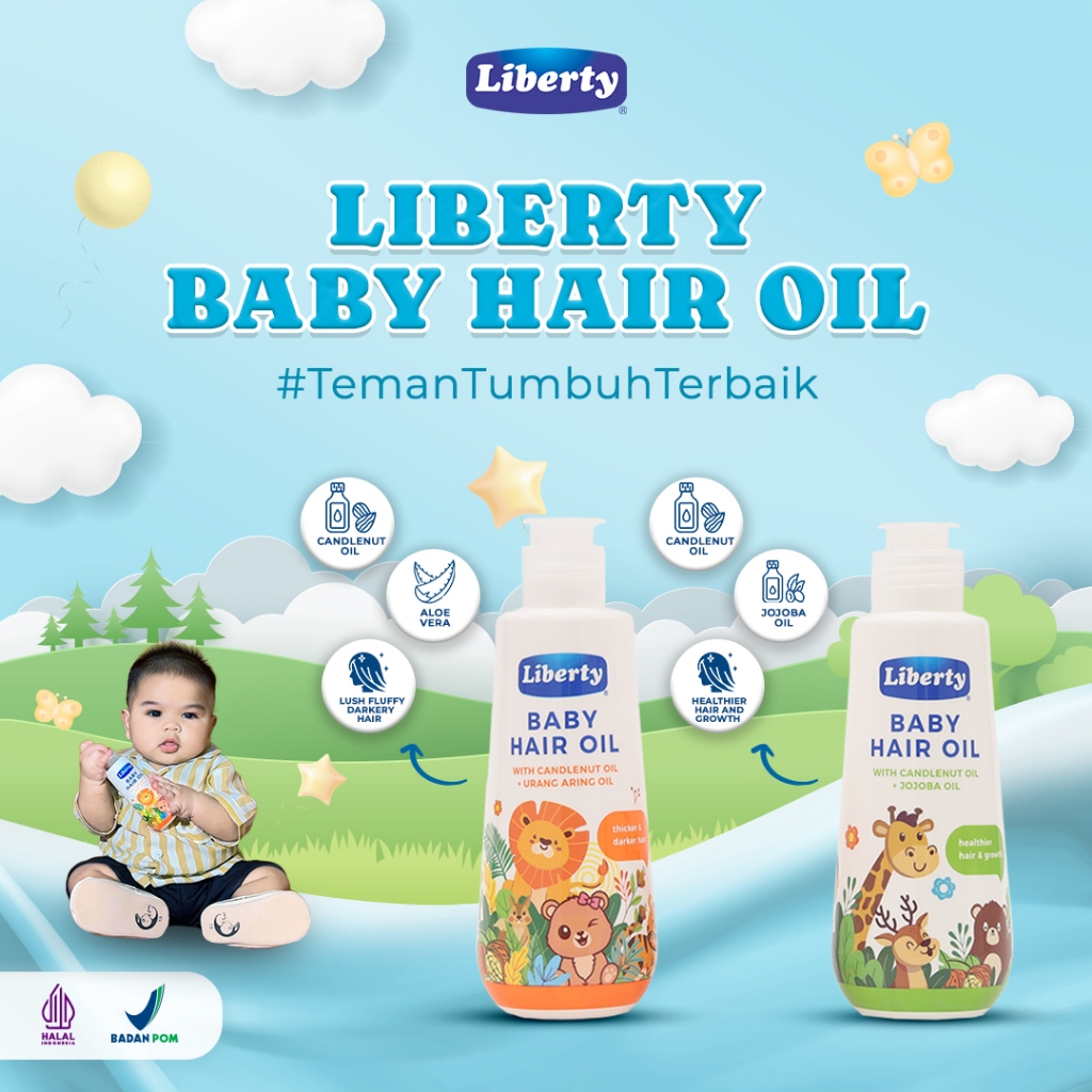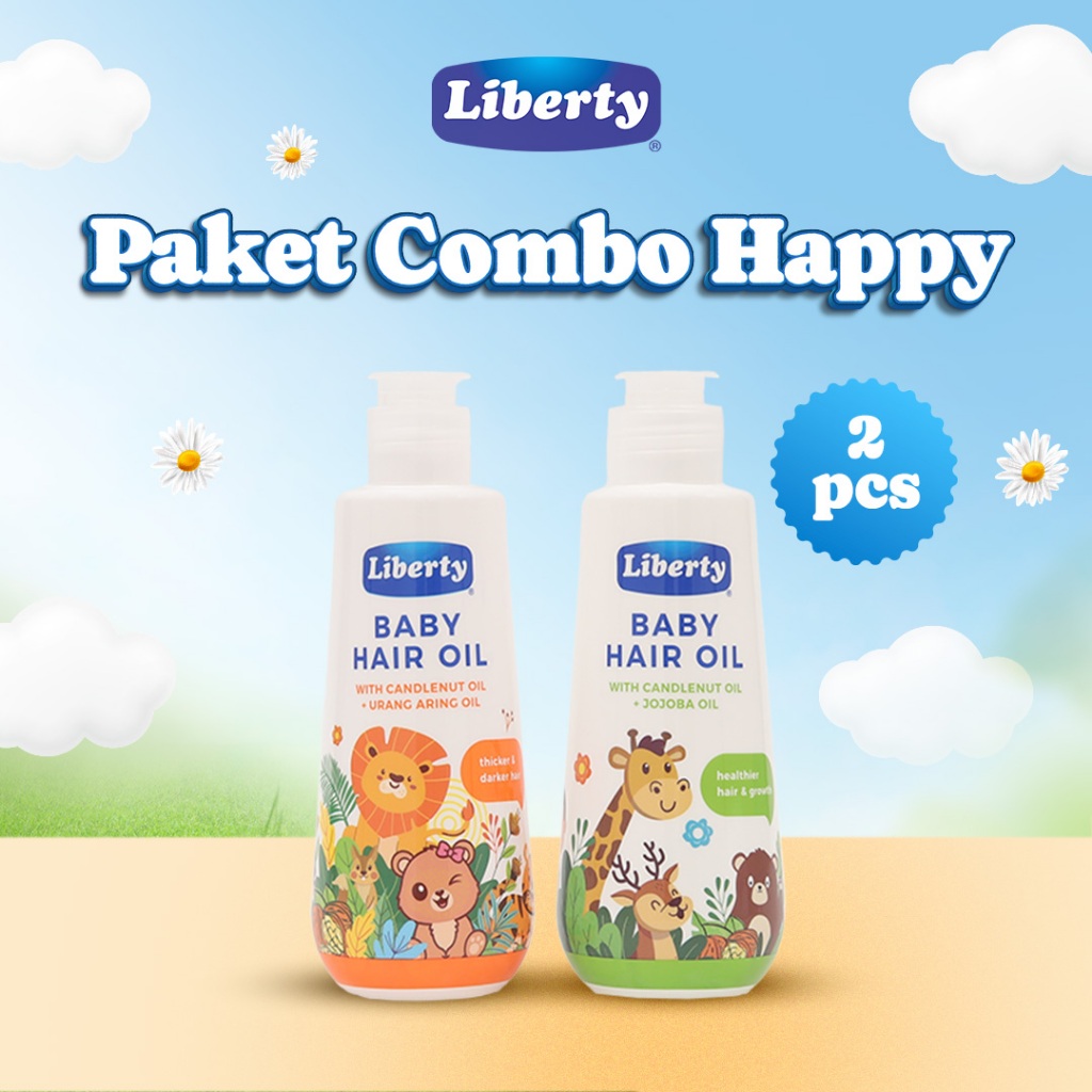 Paket Combo Happy - Minyak Rambut Bayi Liberty Baby Hair Oil Urang Aring&Jojoba isi 2pcs - Rambut Lebat,Hitam Berkilau