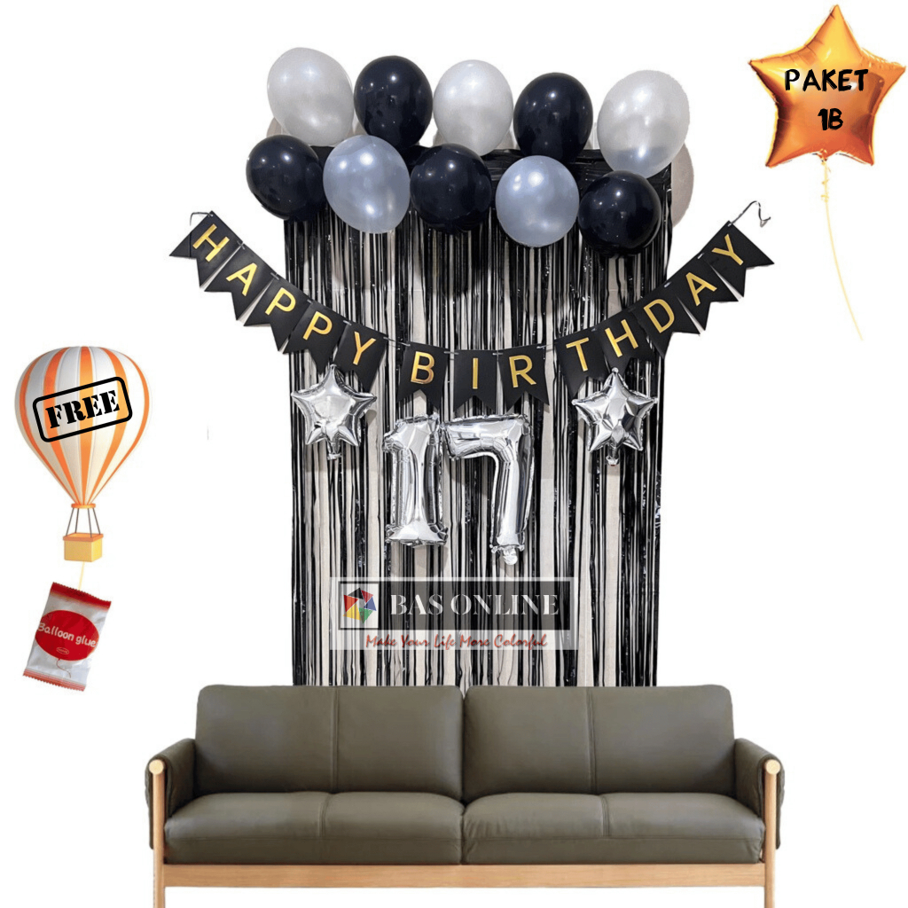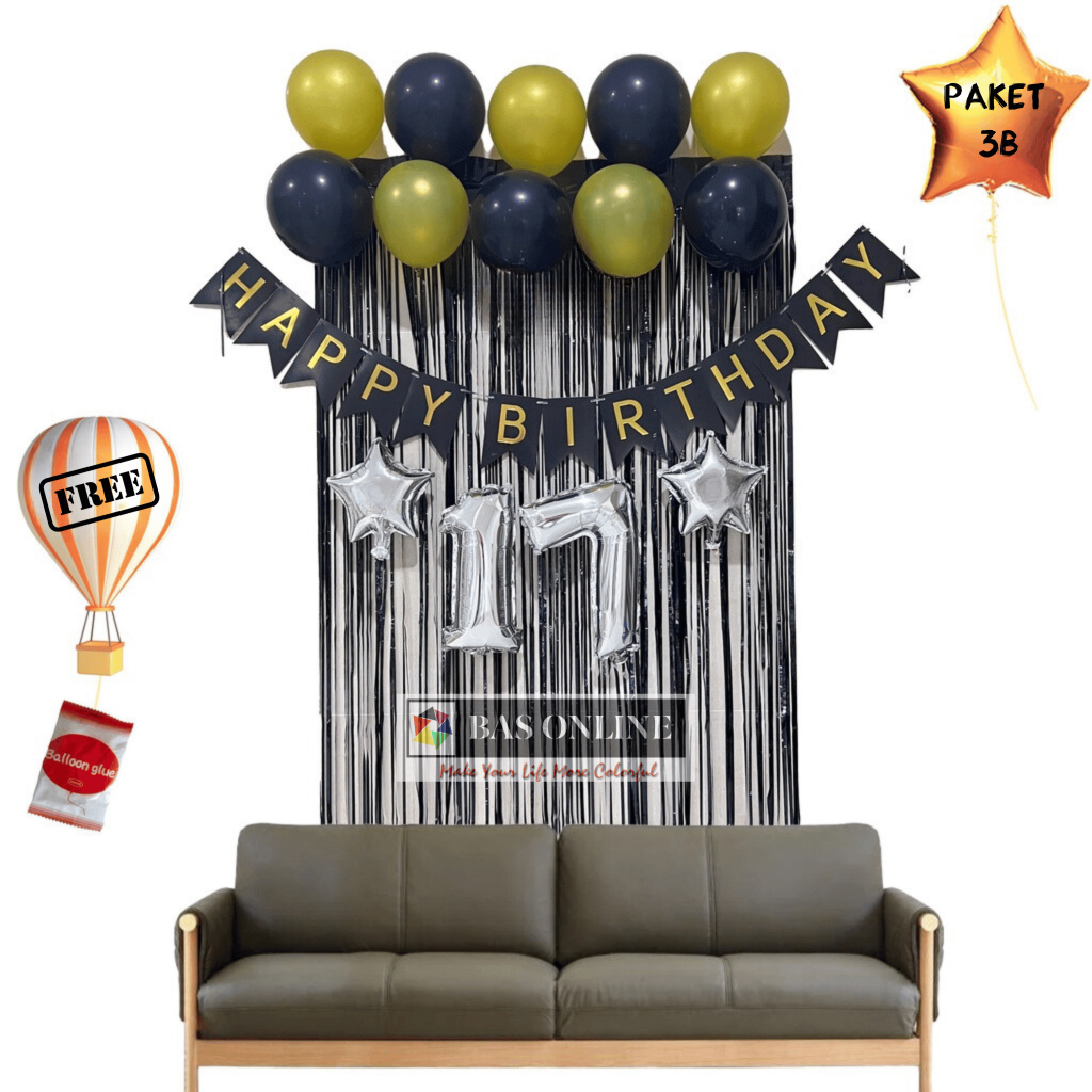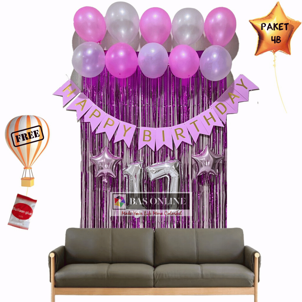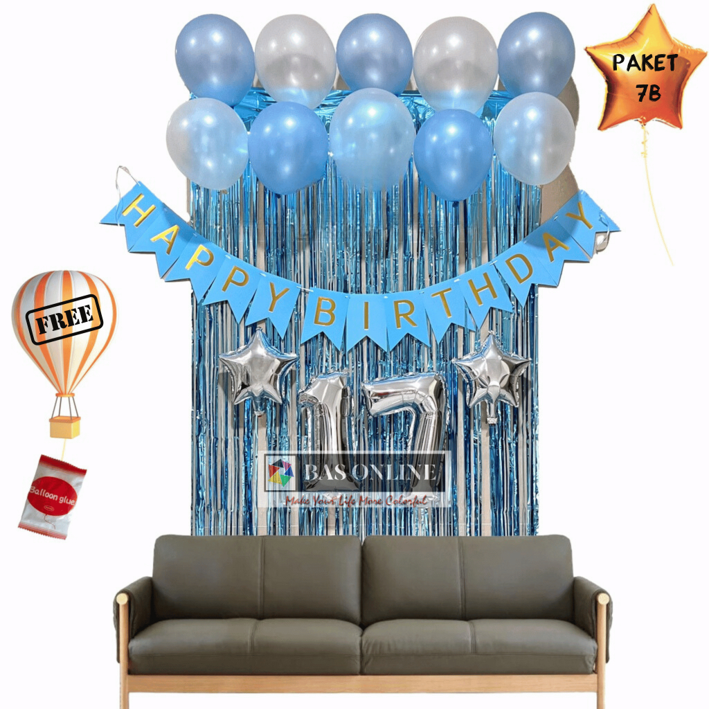 [Paket satu Set] Balon Dekorasi Ulang Tahun Murah Perlengkapan Pesta Ultah atau Happy Birthday Sederhana banner balon angka bintang love