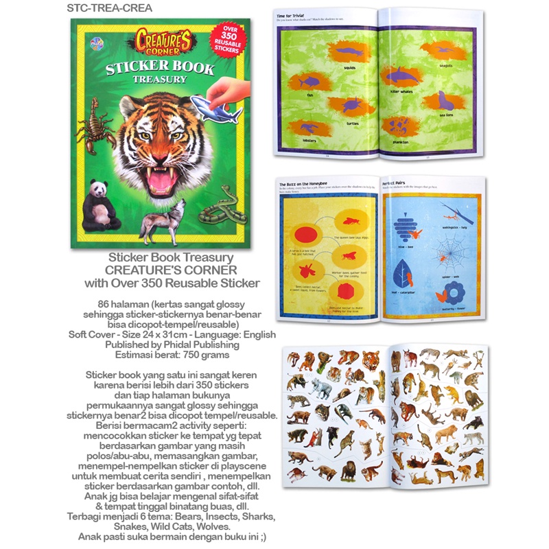 [Phidal] Sticker Book Treasury CREATURE'S CORNER with Over 350 Reusable Sticker (HA)