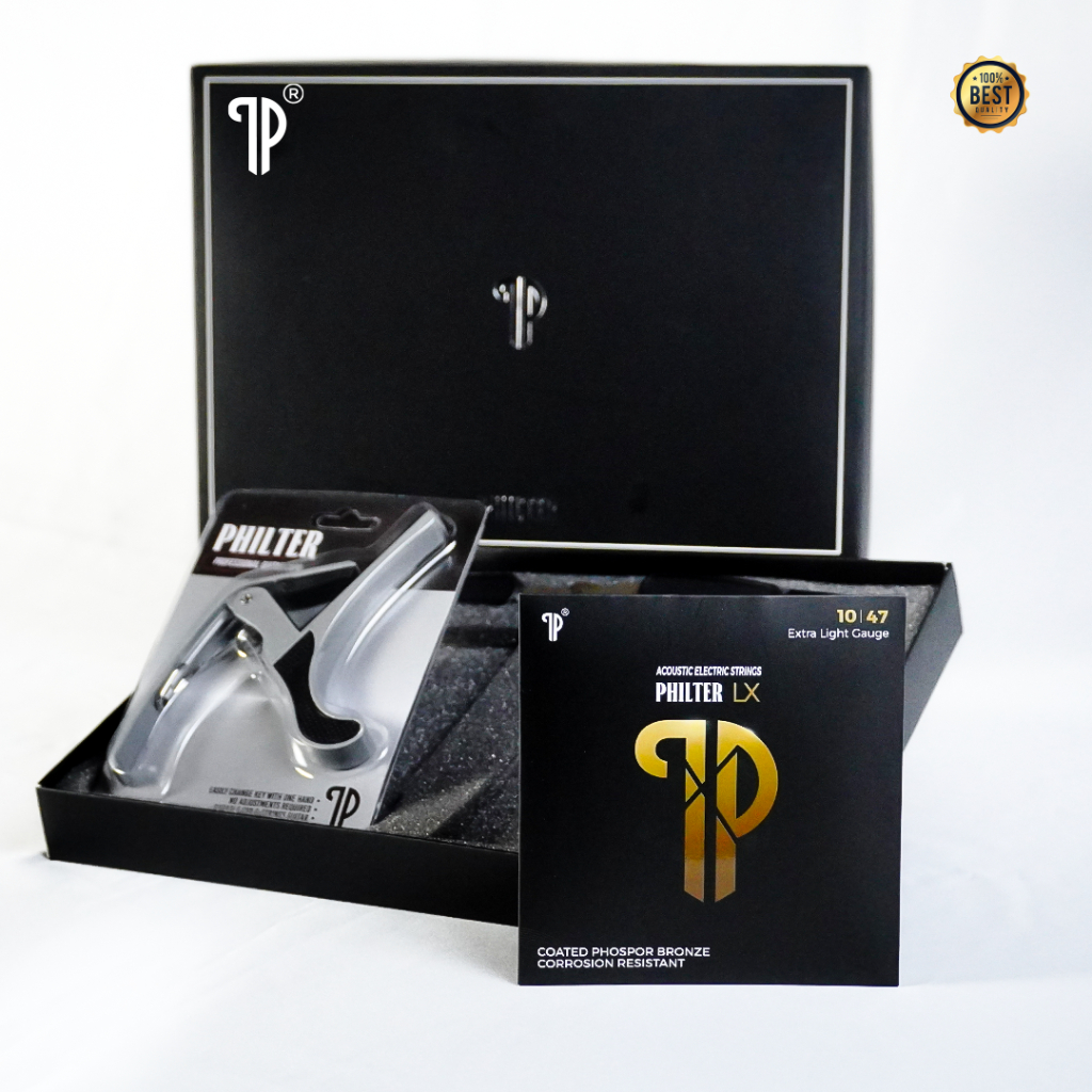 [Philter Signature Bundle] Senar Gitar Akustik Philter String Capo Gitar Pickholder 3 In 1 String Winder