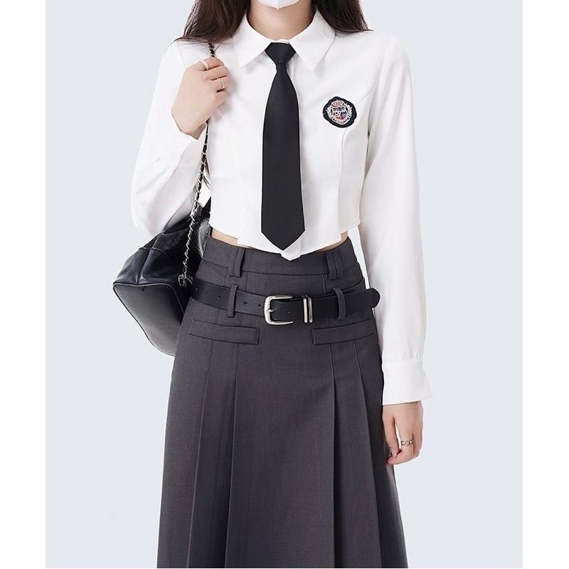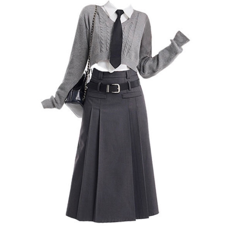 [ Premium Series ] Harajuku Korean College Student School Girl JK Uniform Cosplay BlackPink Blink Set ( Sweater + Shirt + Tie + Skirt + Belt )
