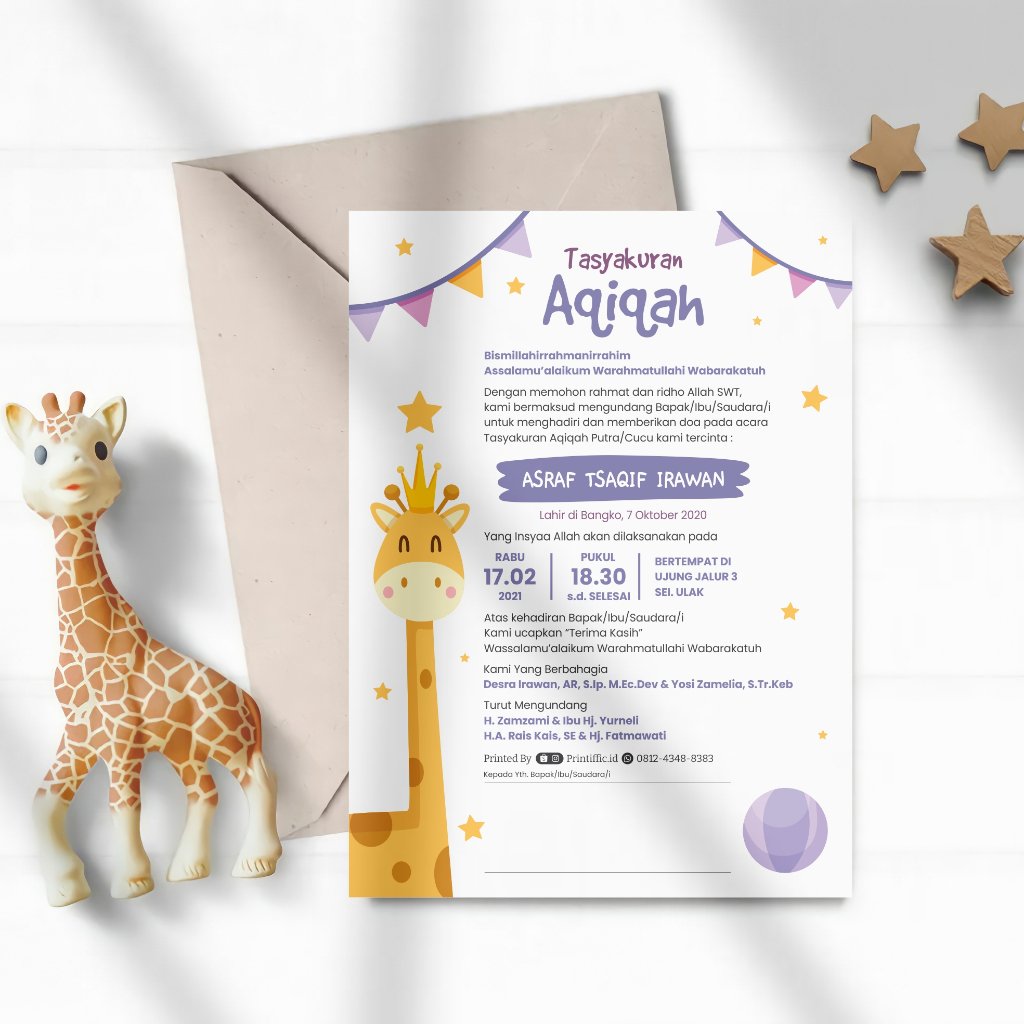 [Printiffic.id] C-01 | Undangan Aqiqah Cute - Giraffe King