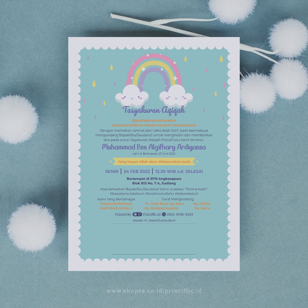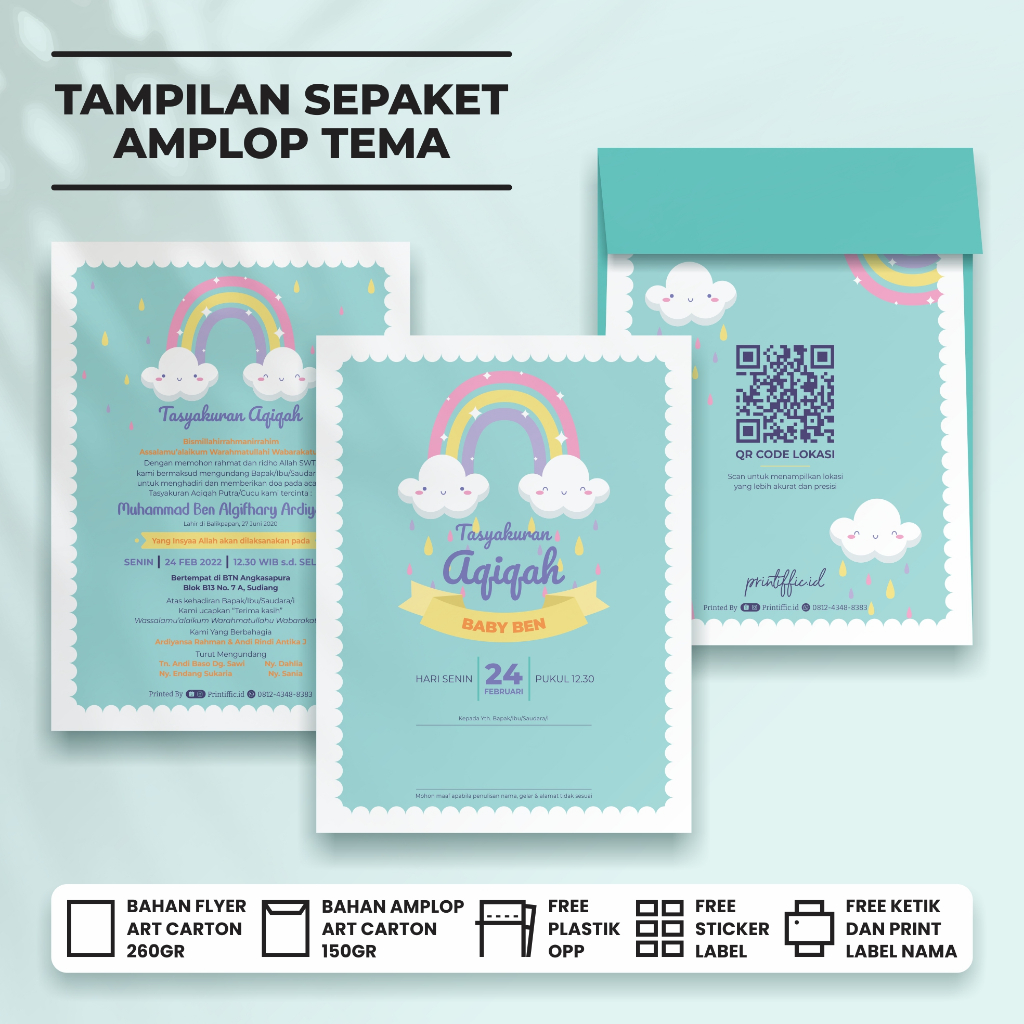 [Printiffic.id] C-07 | Undangan Aqiqah Cute - Rain n' Rainbow