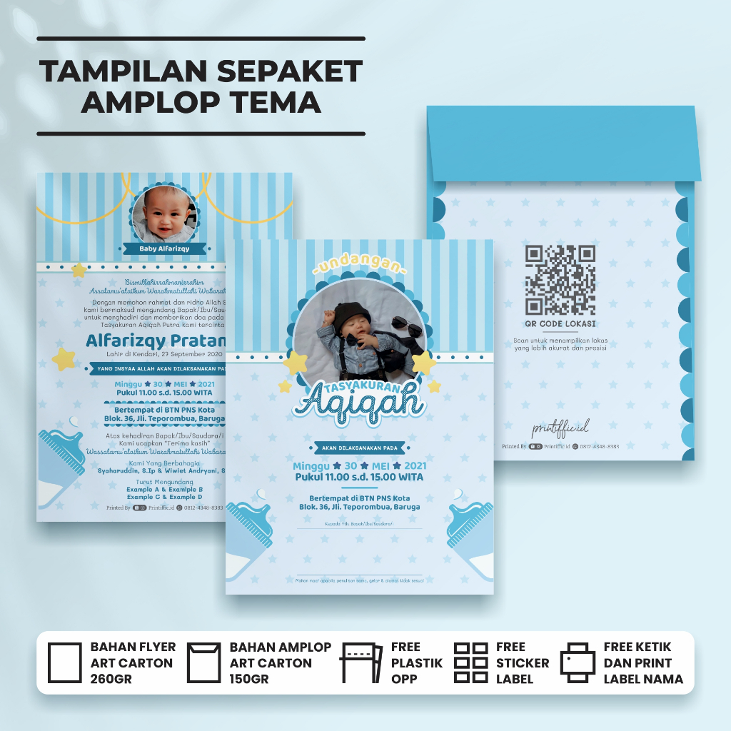 [Printiffic.id] C-12 | Undangan Aqiqah Cute - Baby Boy Blue Pacifier