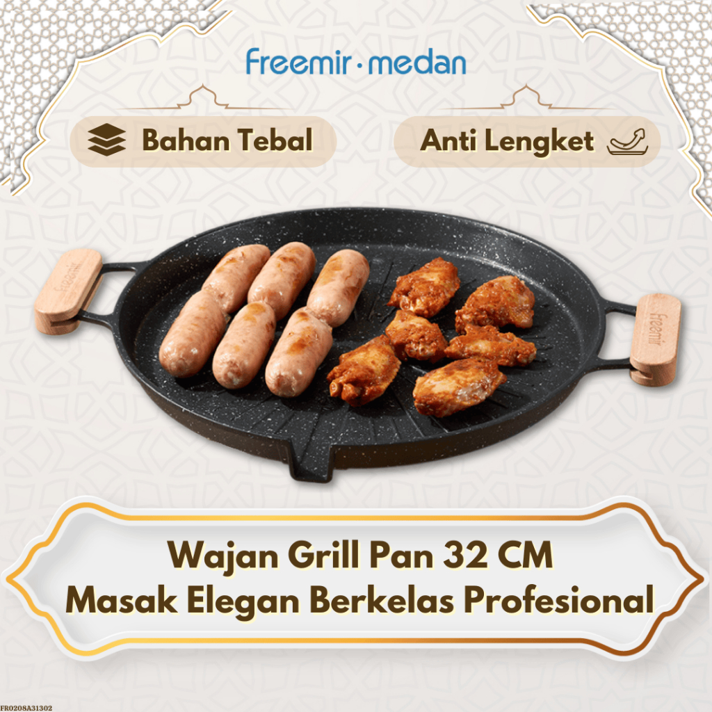 [Promo ]freemir Grill Pan 32 CM Wajan Anti Lengket Penggorengan BBQ Steak Granit
