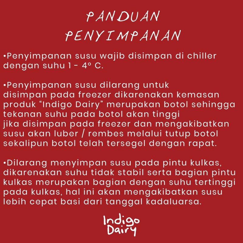 [READY] Susu Pasteurisasi Indigo Dairy | Fresh Milk 1 Liter / 1000 ml | Pasteurized Milk | High Protein Low Sugar
