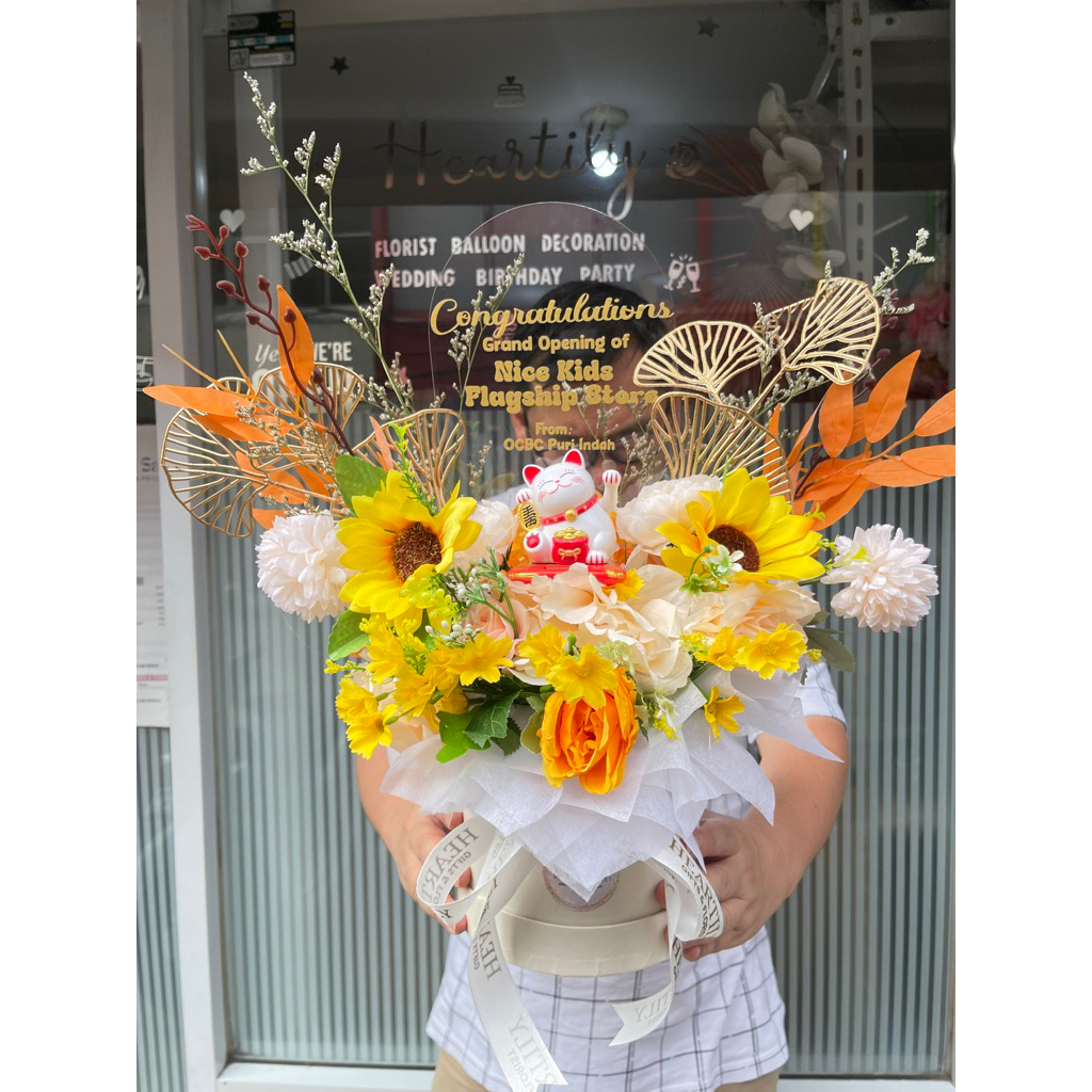 [READY 1 JAM JADI] LUCKY CAT BLOOM BOX GRAND OPENING BOUQUET BUNGA GRAND OPENING BUKET BUNGA PEMBUKAAN Mix Warna Buket Balon Bucket Balloon Graduation Snack Balloon Bucket Best Seller Balon Wisuda
